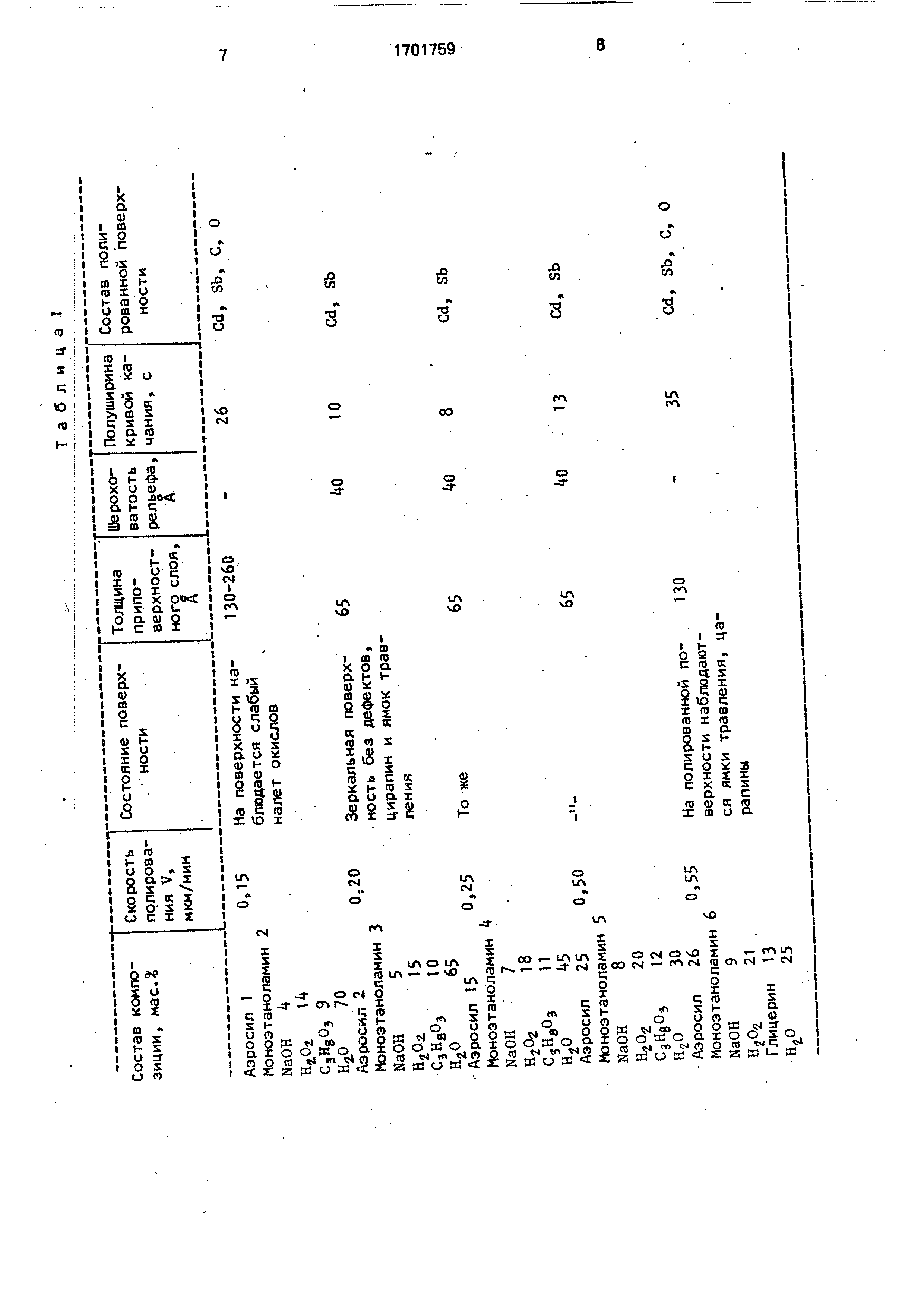 реактивов и продуктов их реакции с материалом CdSb. Наиболее близкой к предлагаемой является композиция для полирования поверхности