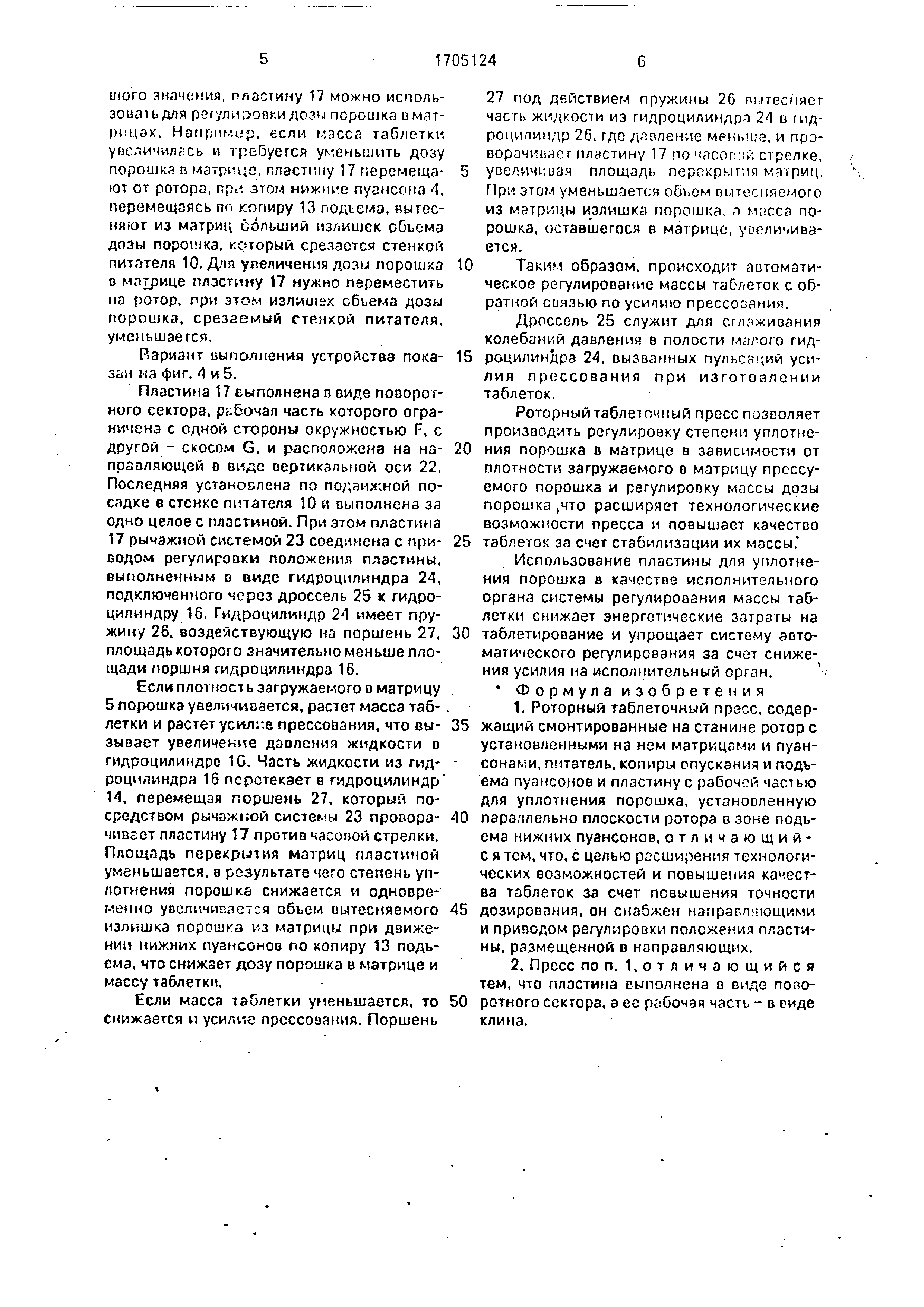 из матрицы излишка порошка, а масса порошка , оставшегося в матрице, увеличивается . Таким образом, происходит автоматическое регулирование массы таблеток с обратной