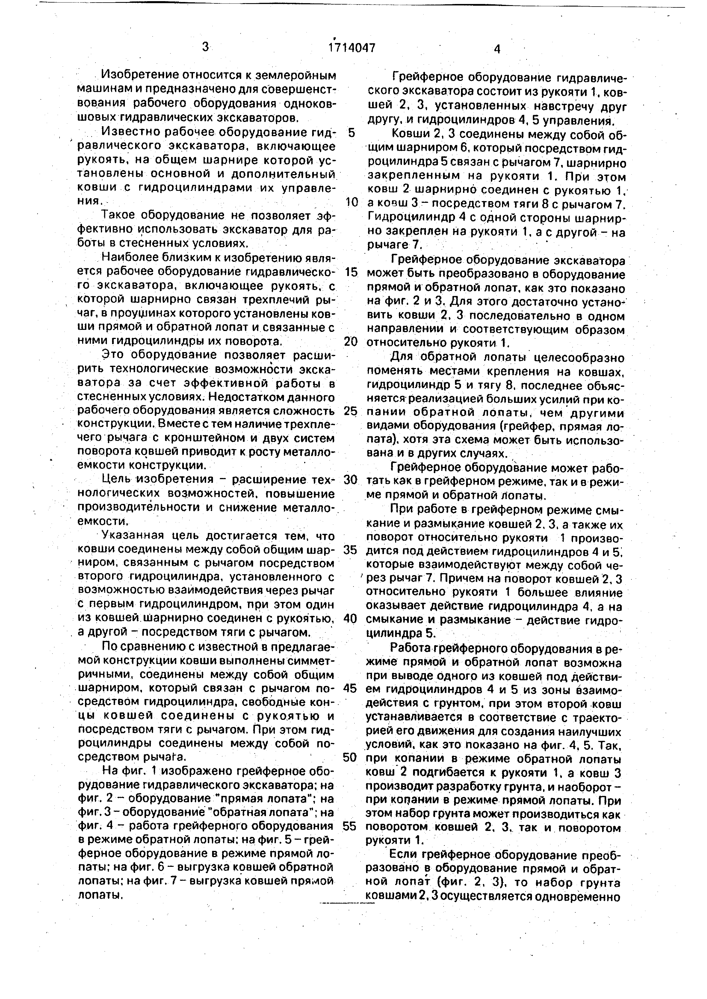 работать как в грейферном режиме, так и в режиме прямой и обратной лопаты. При работе в грейферном режиме смыкание и размыкание ковшей 2. 3, а также их