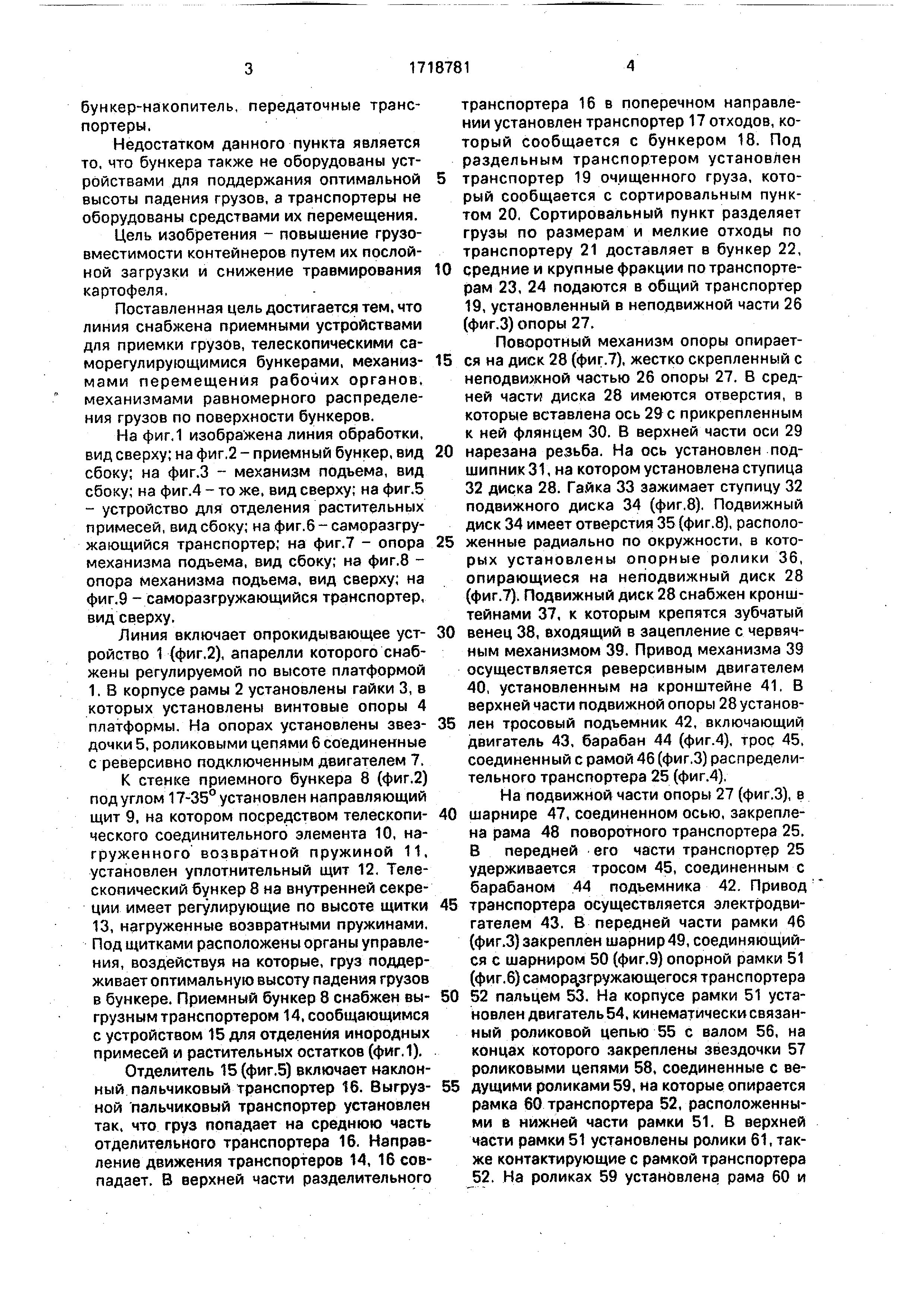 контейнеров путем их послойной загрузки и снижение травмирования картофеля, Поставленная цель достигается тем, что линия снабжена приемными устройствами