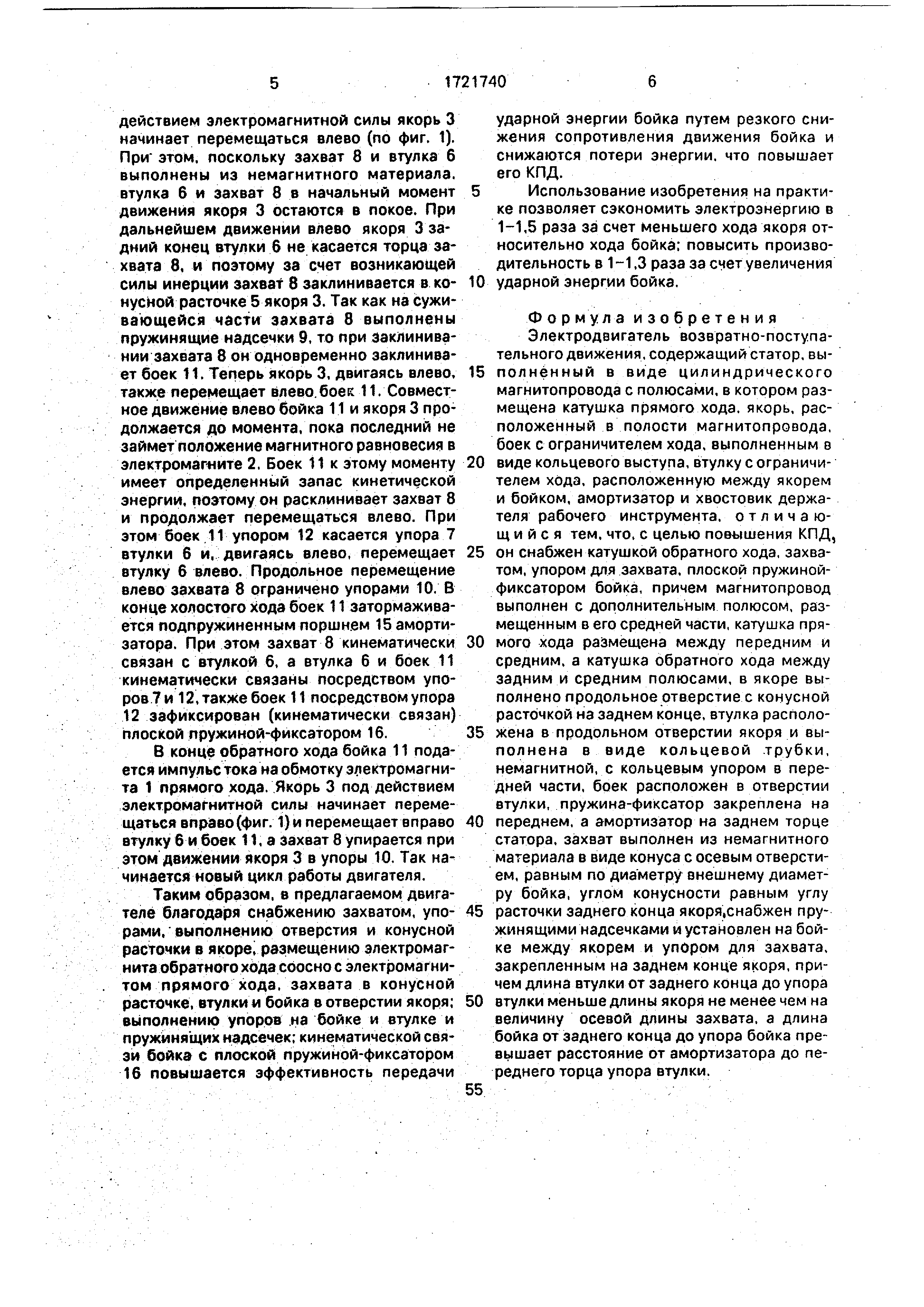 втулка 6 и захват 8 в начальный момент движения якоря 3 остаются в покое. При