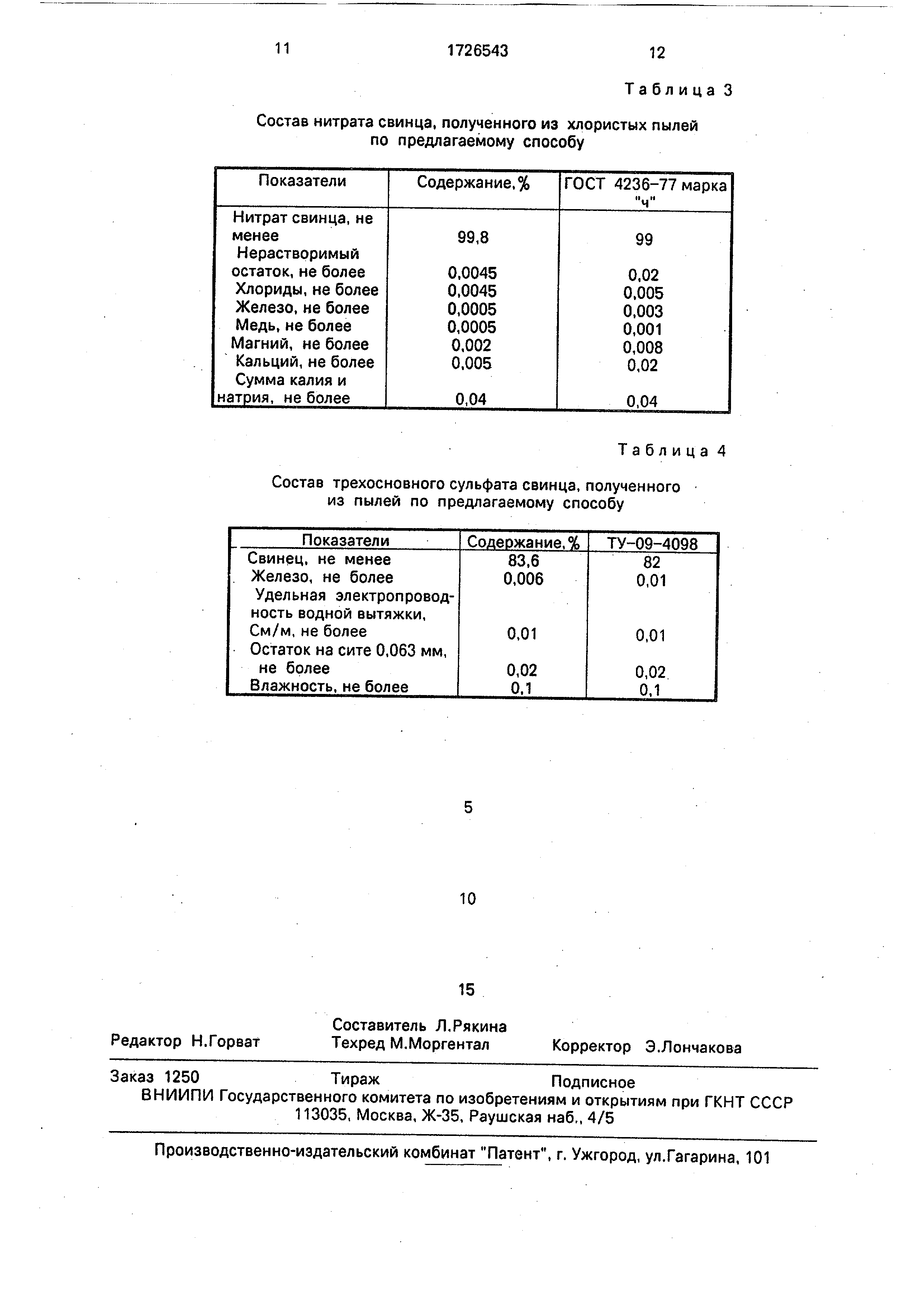 Состав нитрата свинца, полученного из хлористых пылей по предлагаемому способу