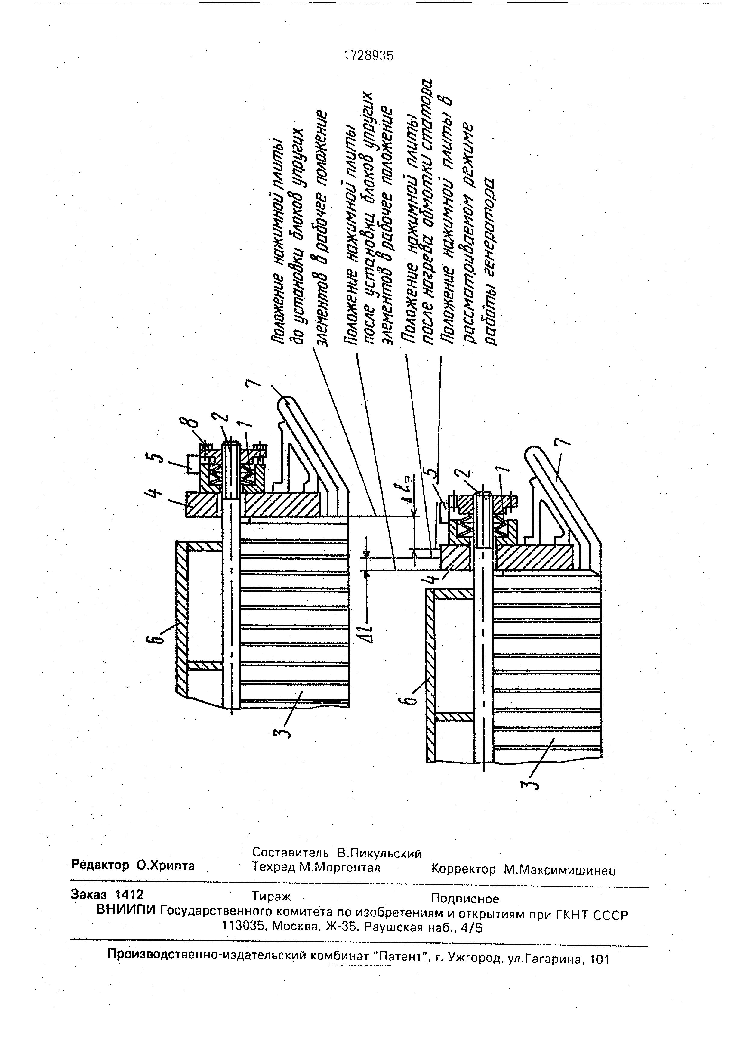 активной стали 3, фиксируются величины предварительного сжатия I. В поджатом состоянии