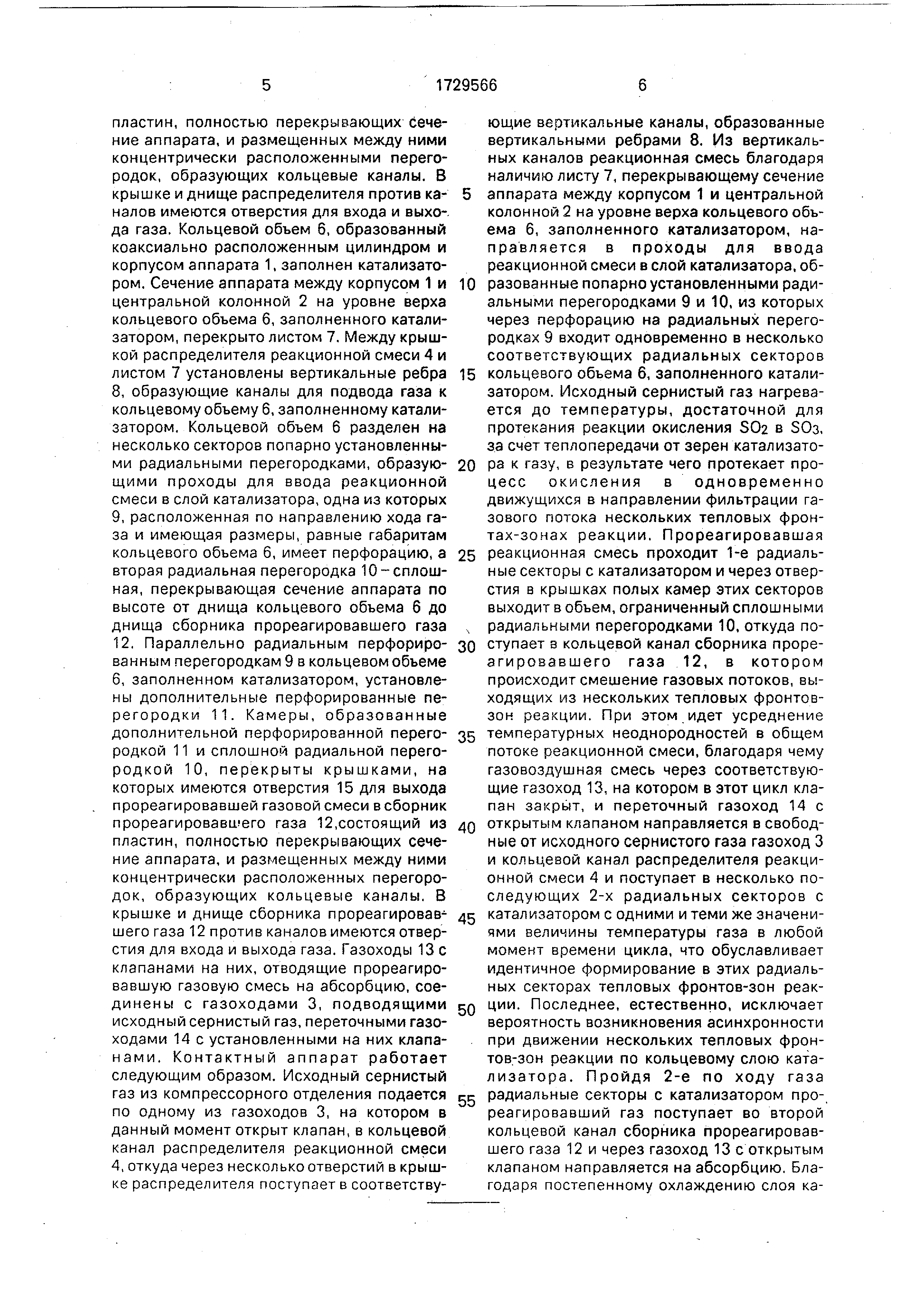 перемещающихся в кольцевом слое катализатора, а также исключения хода исходного сернистого газа в направлении, противоположном движению теплового фронта-зоны реакции в слое катализатора.
