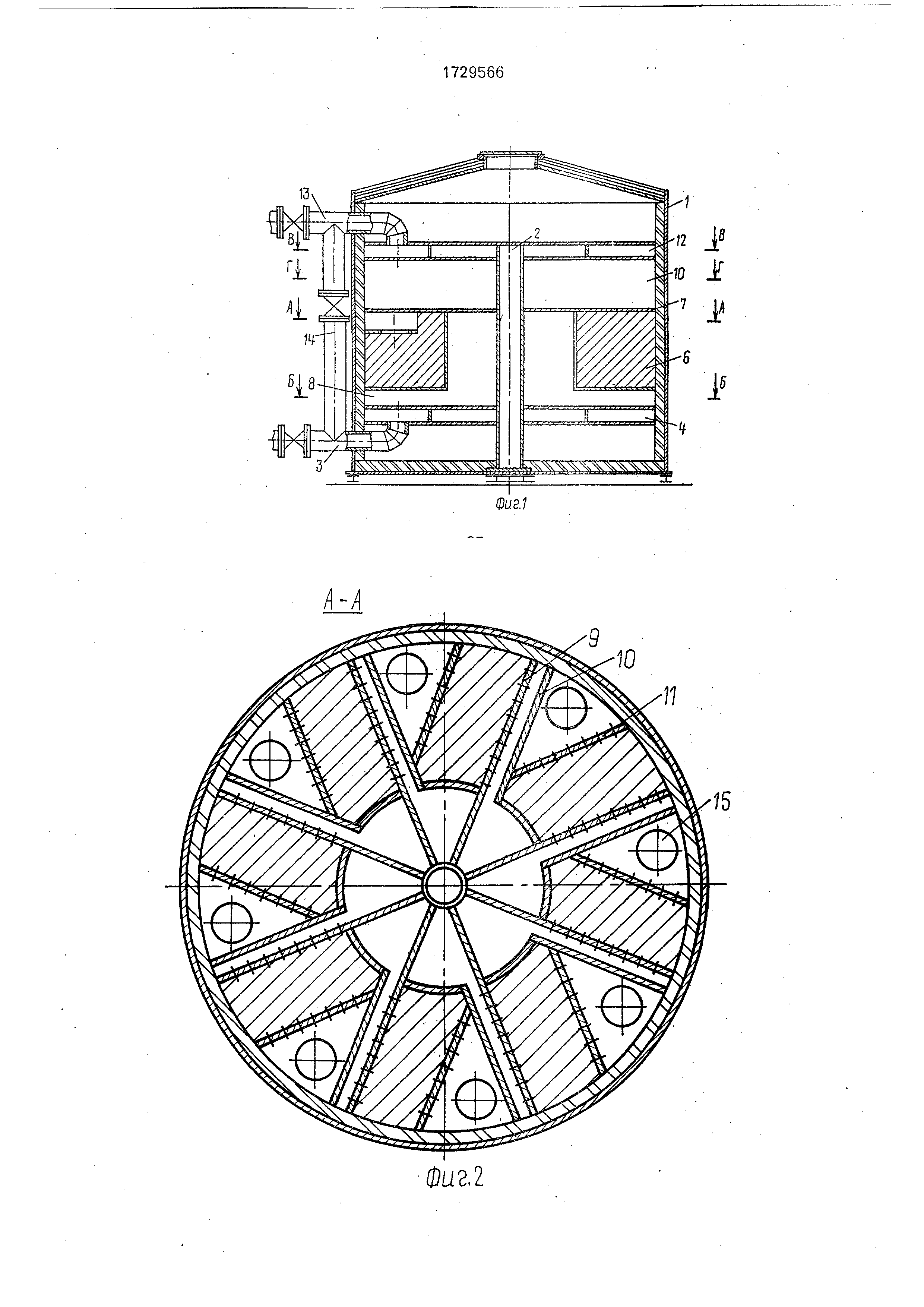 . Аппарат снабжен выполненными сплошными и перекрывающими сечение аппарата