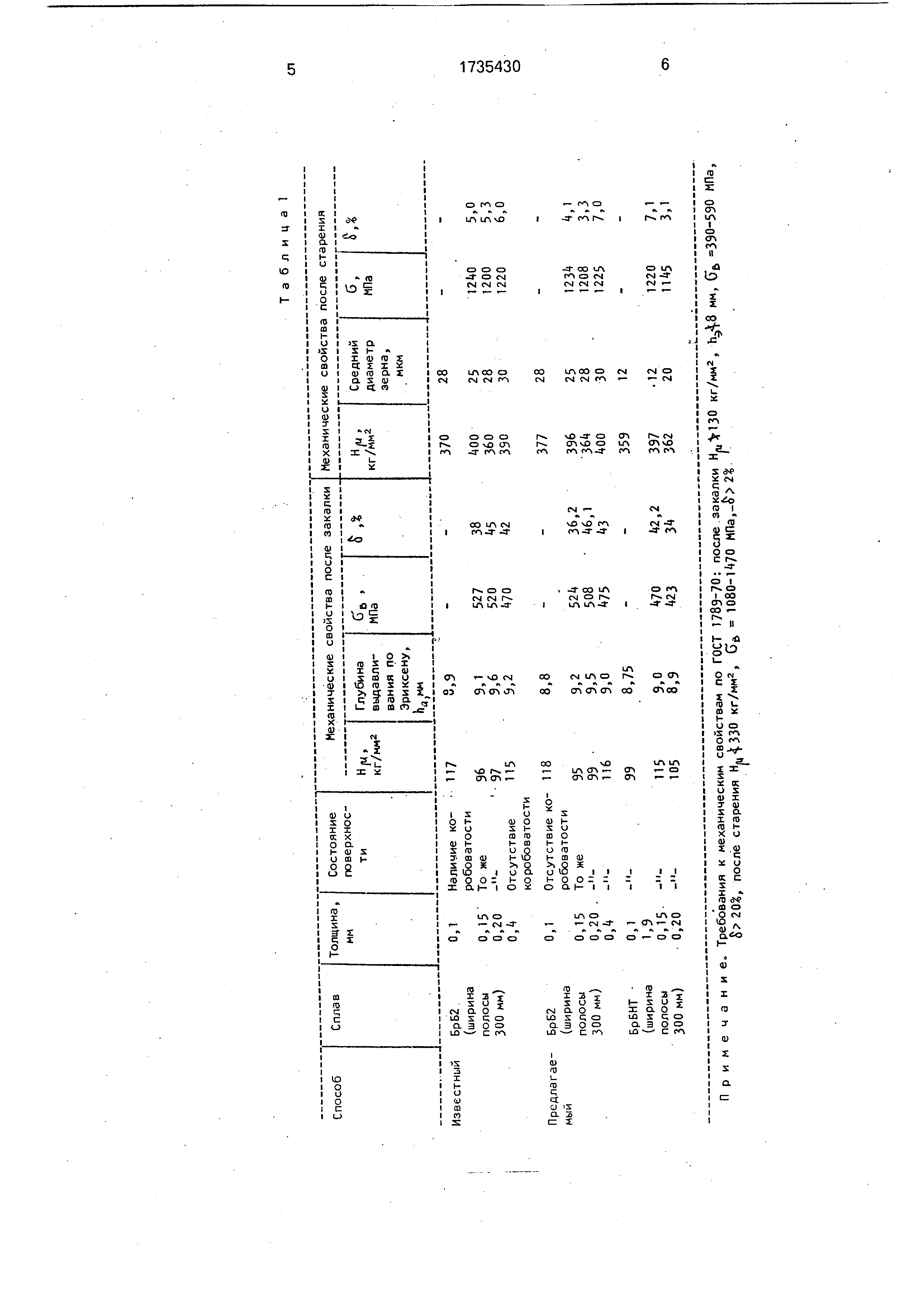 S 2й%, после старения Н.,330 кг/мм2, Gfr 1080-1470 МПа, Примечание. Лентаоврабатыеэлась по предлагаемому способу Таблица2