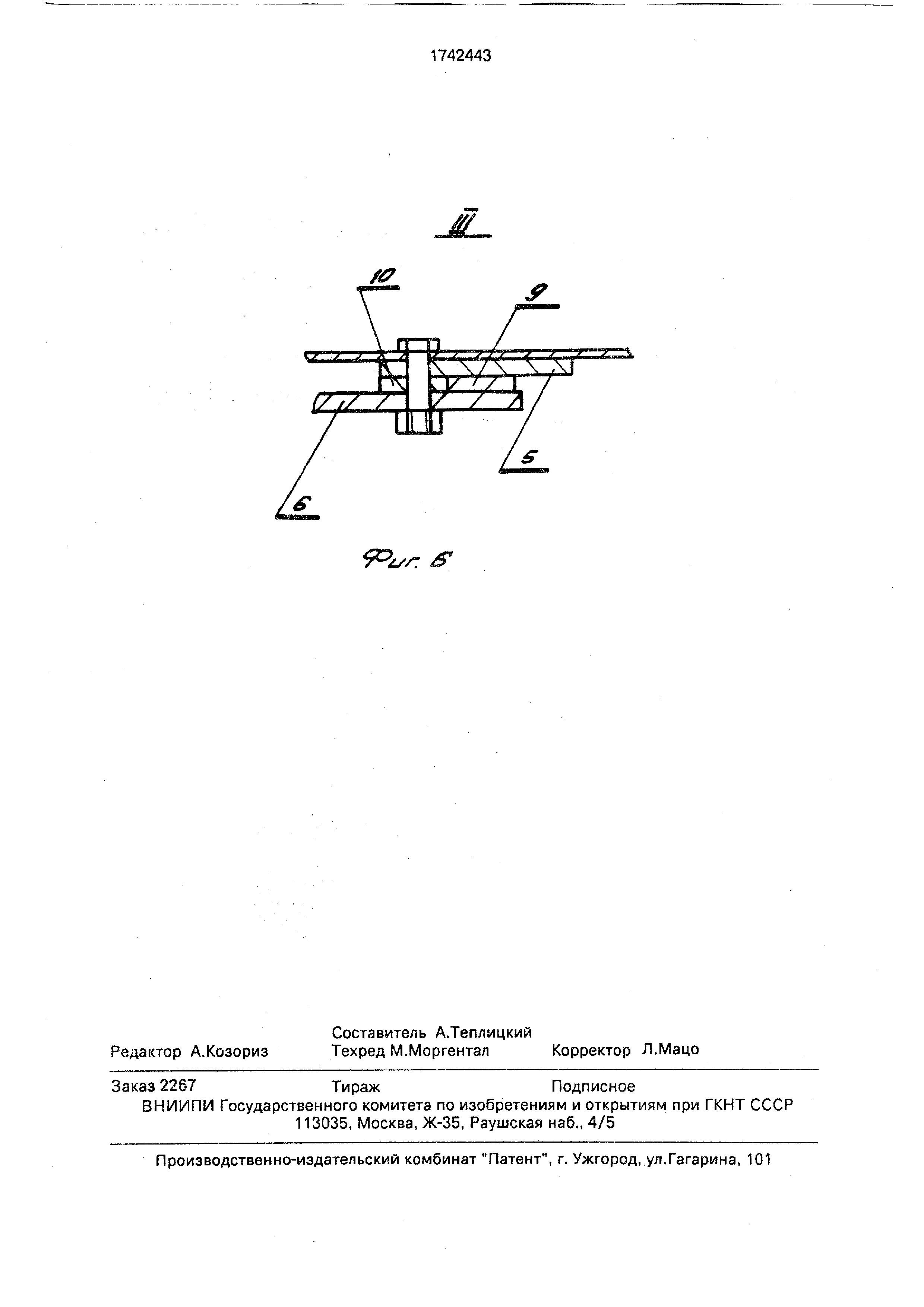 и днищ 5 и 6 до тех пор, пока упоры 11 не войдут в контакт с ограничителями 8. При необходимости остановить раздви- жение люльки в промежуточном положении