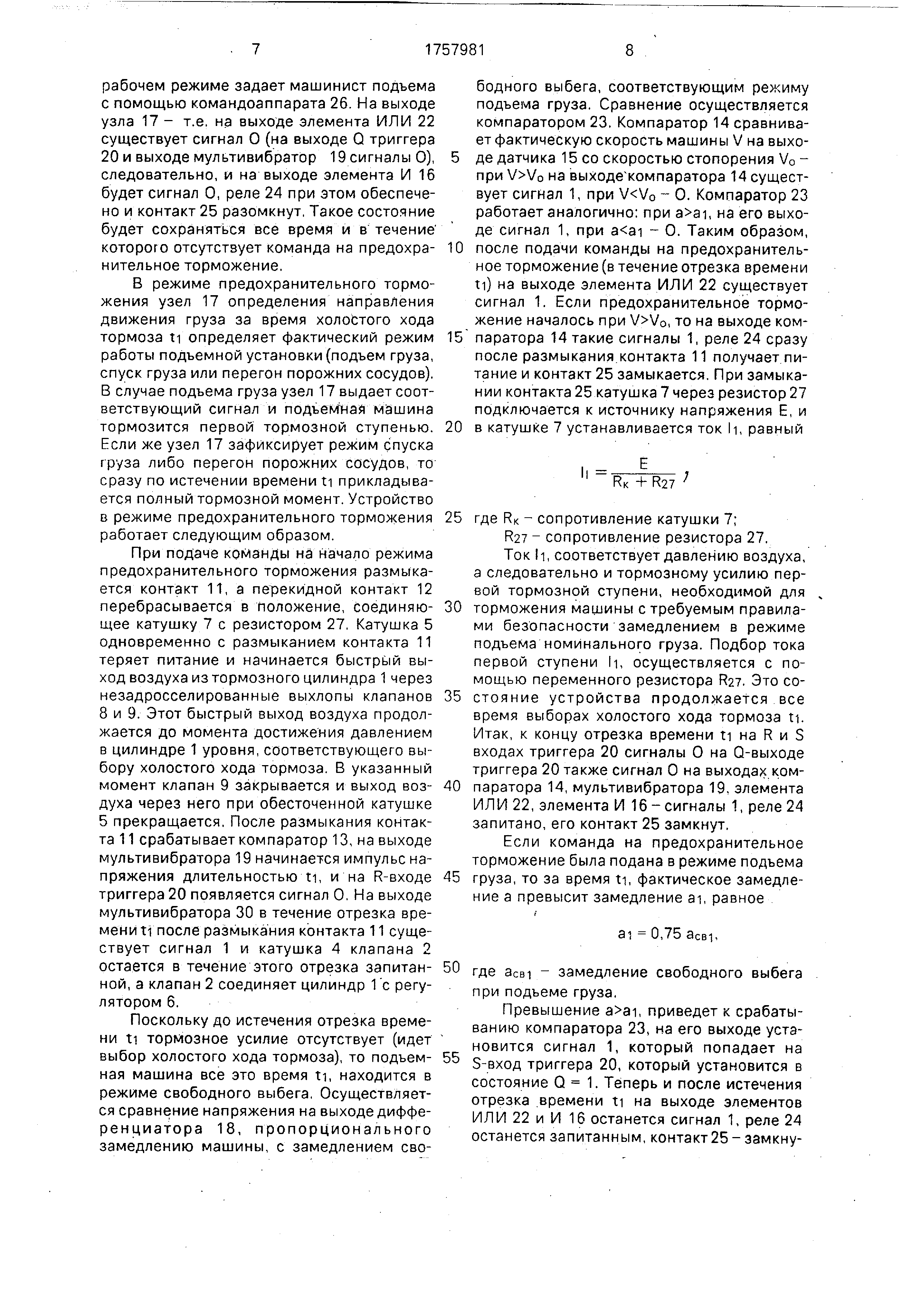 18, пропорционального замедлению машины, с замедлением свободного выбега, соответствующим режиму подъема груза. Сравнение осуществляется