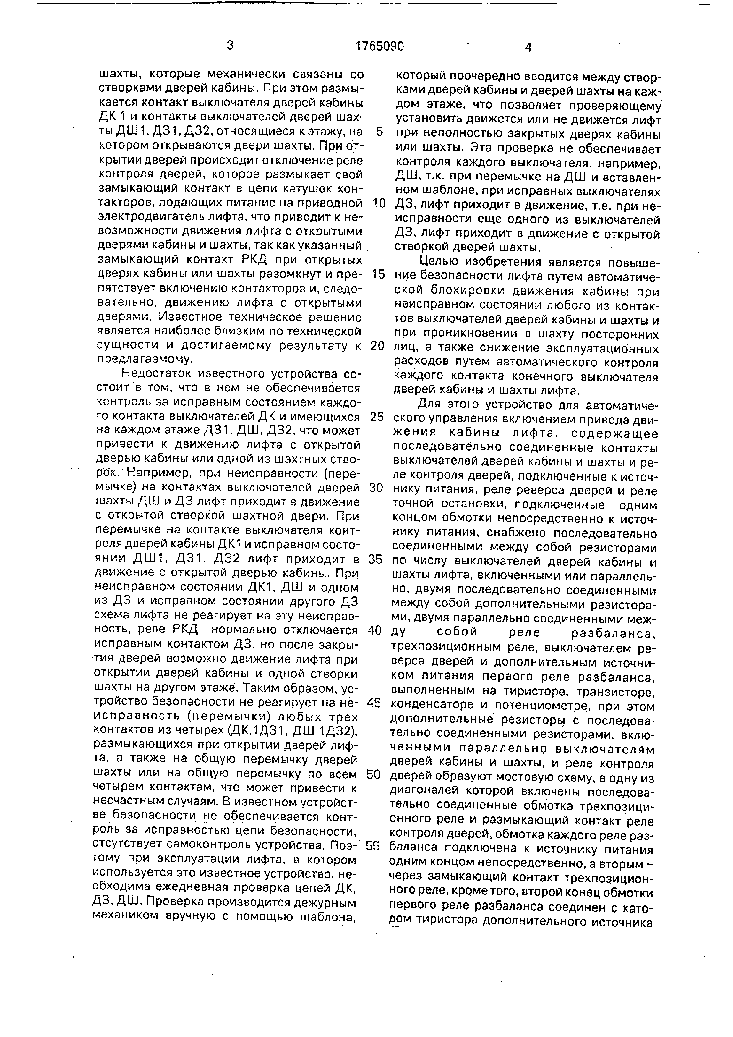 других - с замками притвора этих этажей) всегда меньше величины сопротивления от размыкания выключателей (контакты 1,2,3,4) при открытии дверей кабины и шахты