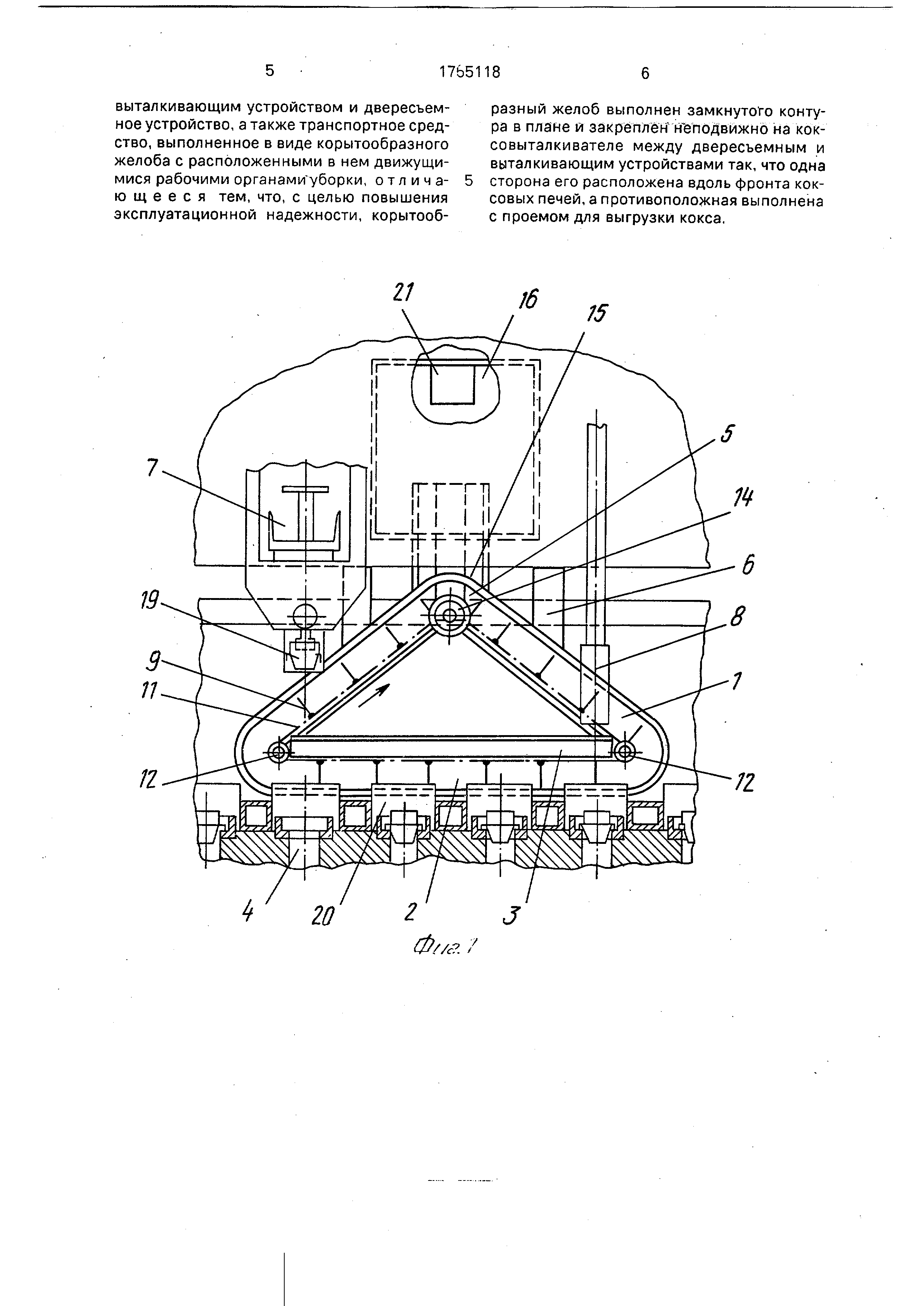 тем, что, с целью повышения эксплуатационной надежности, корытообразный желоб выполнен замкнутого контура в плане и закреплен4 неподвижно на коксовыталкивателе