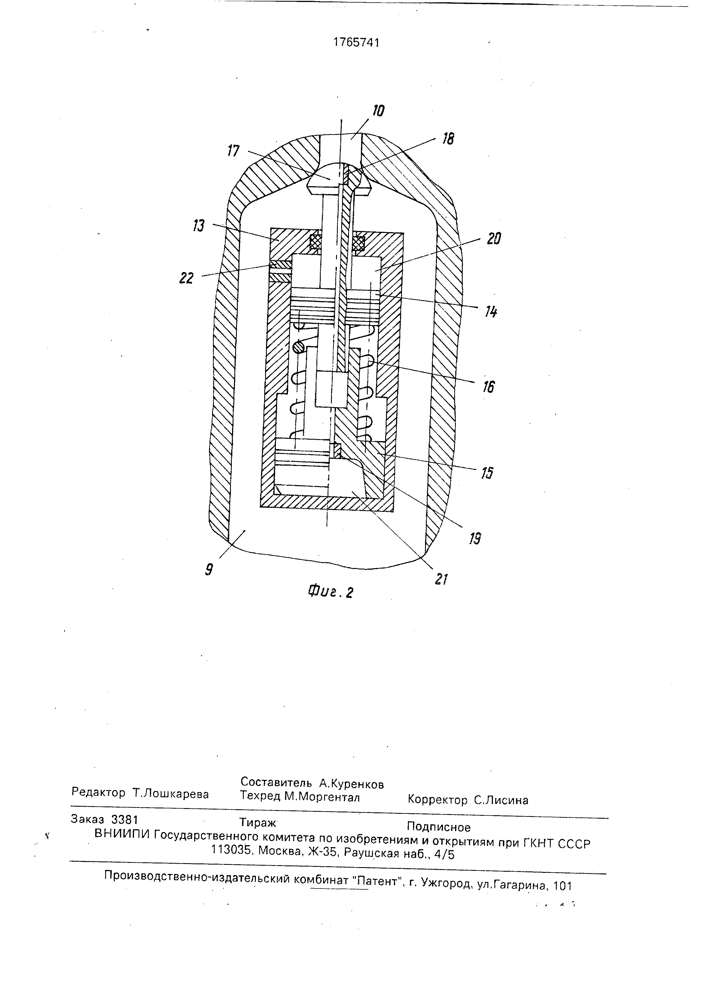 клапана 21 через сквозной канал соединяется с полостью камеры 9 и она (21)