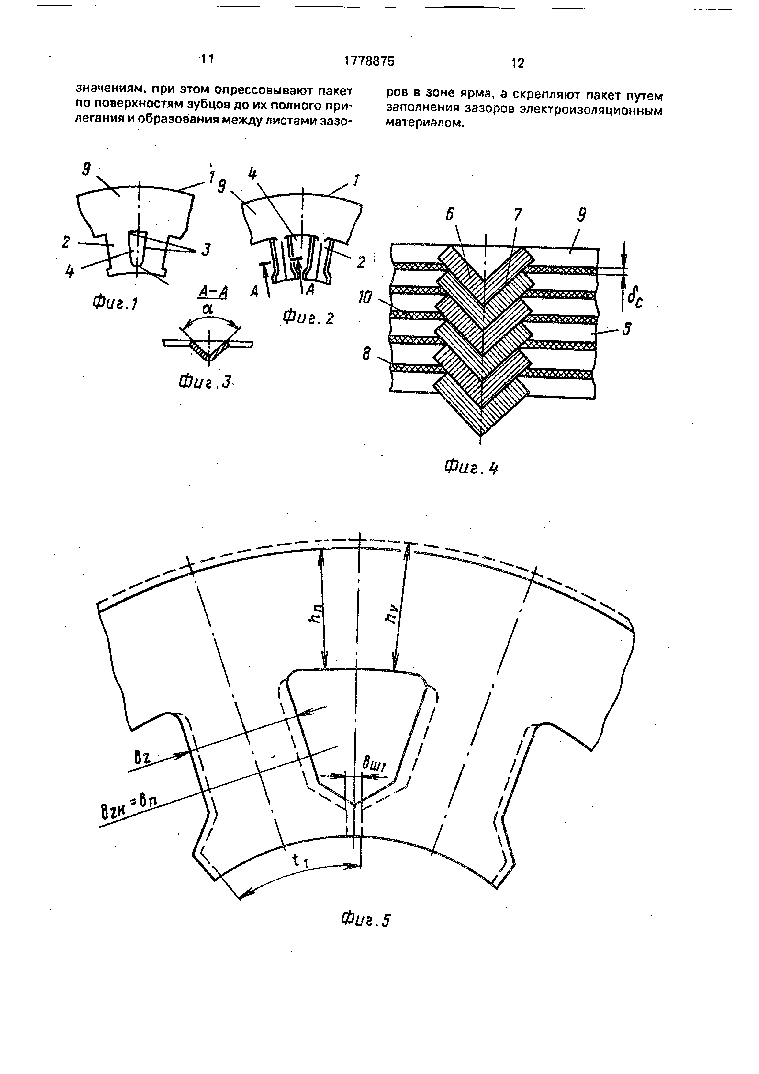 и образования между листами зазоФиг .1 Фиг. 3 ров в зоне ярма, а скрепляют пакет путем заполнения зазоров электроизоляционным