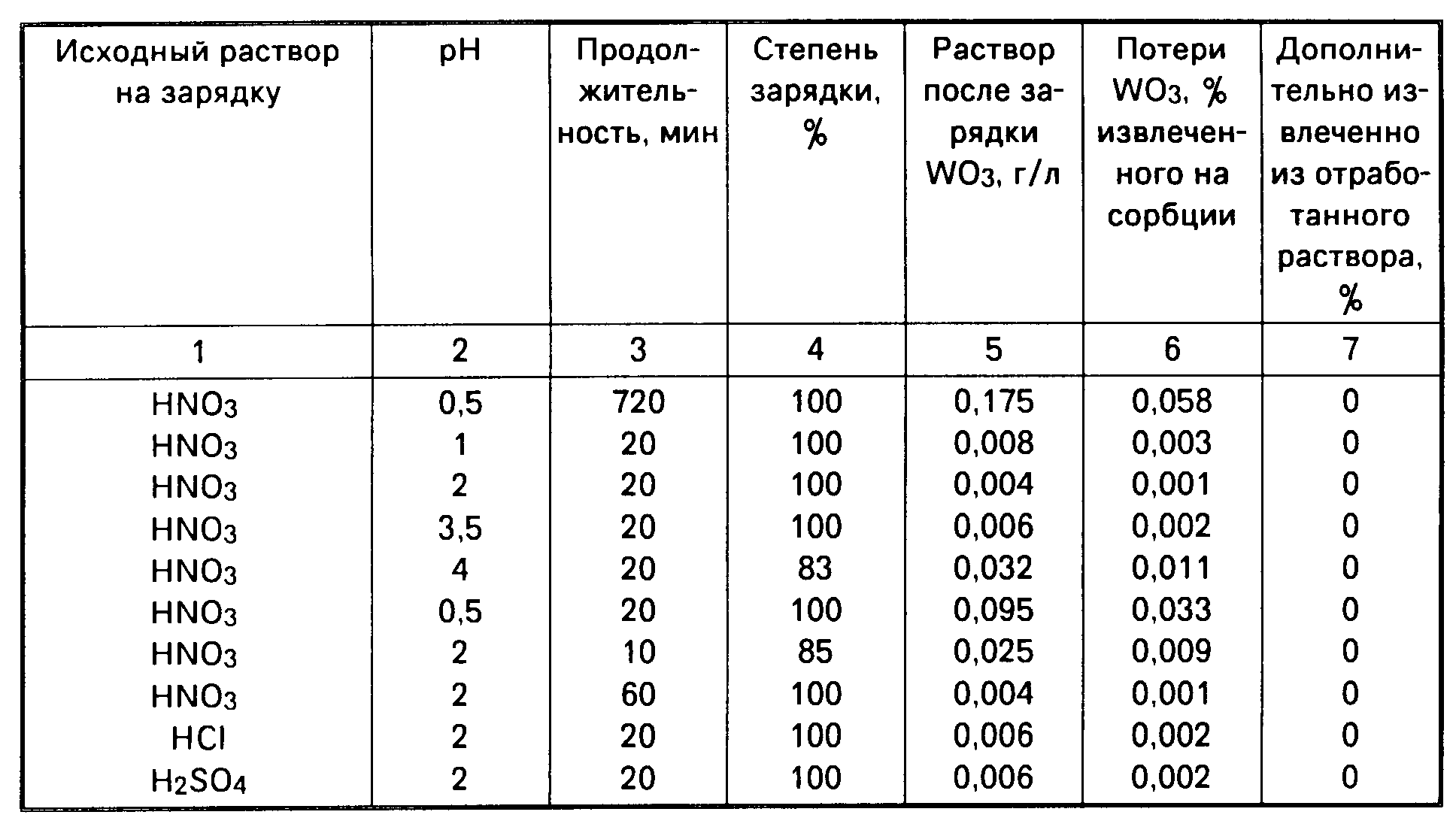 Использование: касается сорбцирнных методов извлечения вольфрама из раствора. Суть: сорбцию вольфрама ведут низкоосновным ионитом ВП-14К в солевой форме при рН 2 - 4. Промывают ионит водой и возвращают на сорбцию. Десорбцию вольфрама ведут 8 - 12,5%-ным раствором аммиака .Из элюата выделяют паравольфрамат аммония. Промывают ионит водой с использованием полученной промводы для приготовления деСорбирую- щего раствора. Проводят зарядку ионита в солевую форму перед возвратом на сорбцию путем контакта ионита с оборотным раствором в статических условиях при рН 1 - 3,5 в течение не менее 20 мин. 1 табл. ся d 00 о -4 W Ы