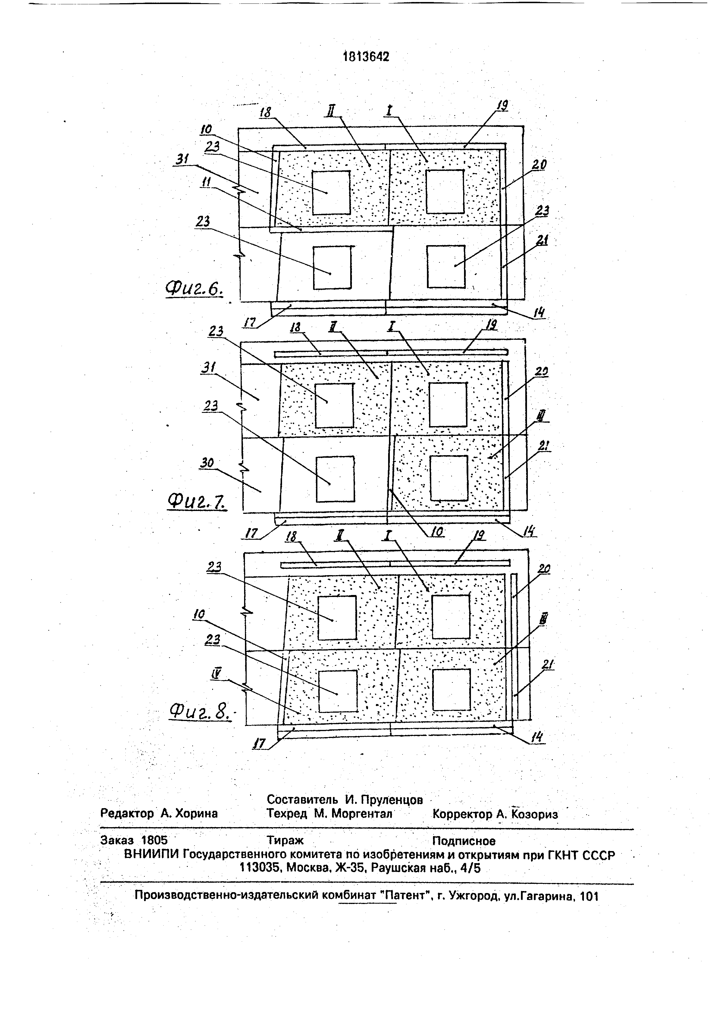 показано формование панели i; на фиг.б - панели II.; на фиг.7 - панели 1 и на фиг.8 -