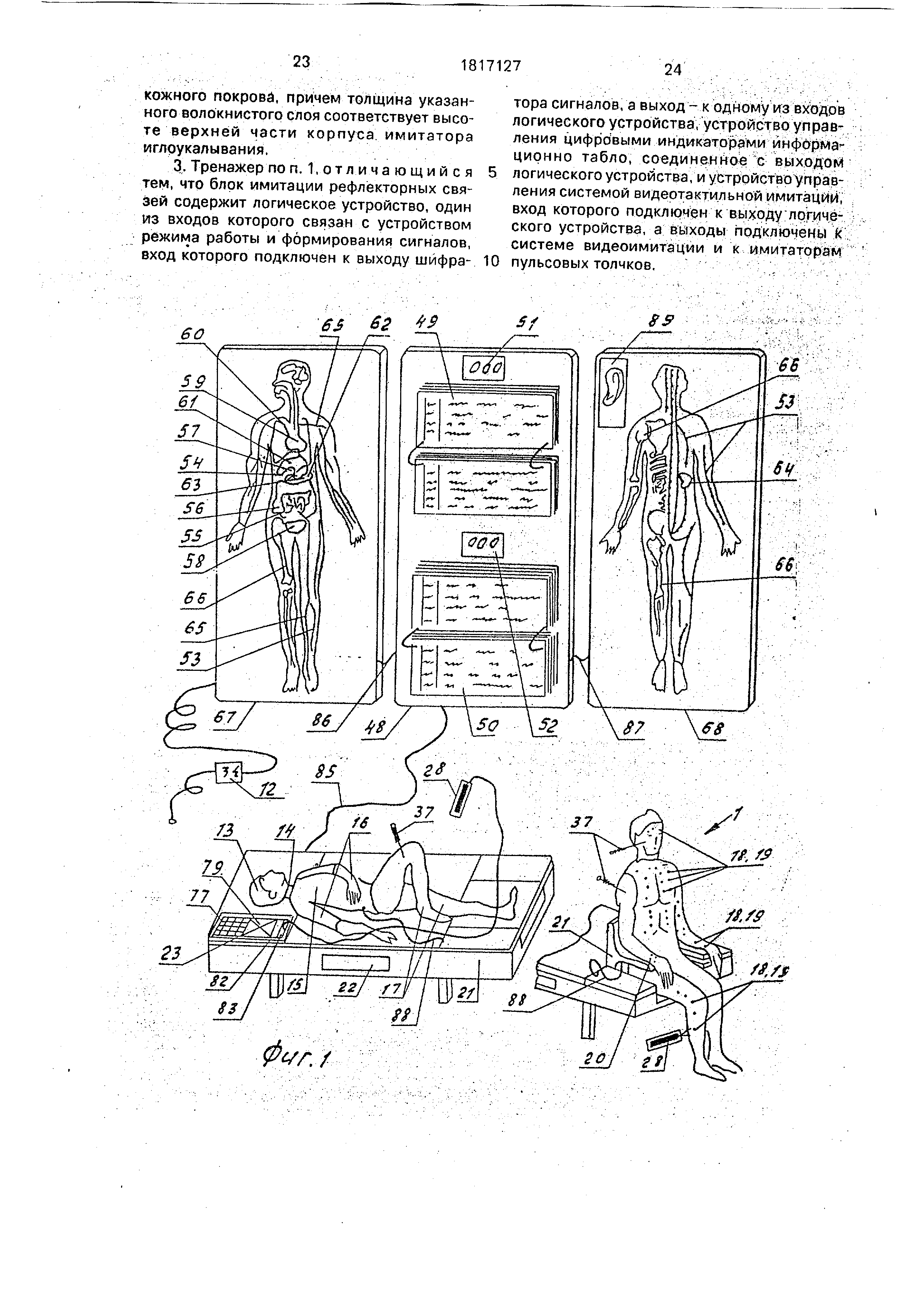 толчков. В тренажер введены система видеоимитации, шифратор сигналов установленный в корпусе муляжа, блок имитации