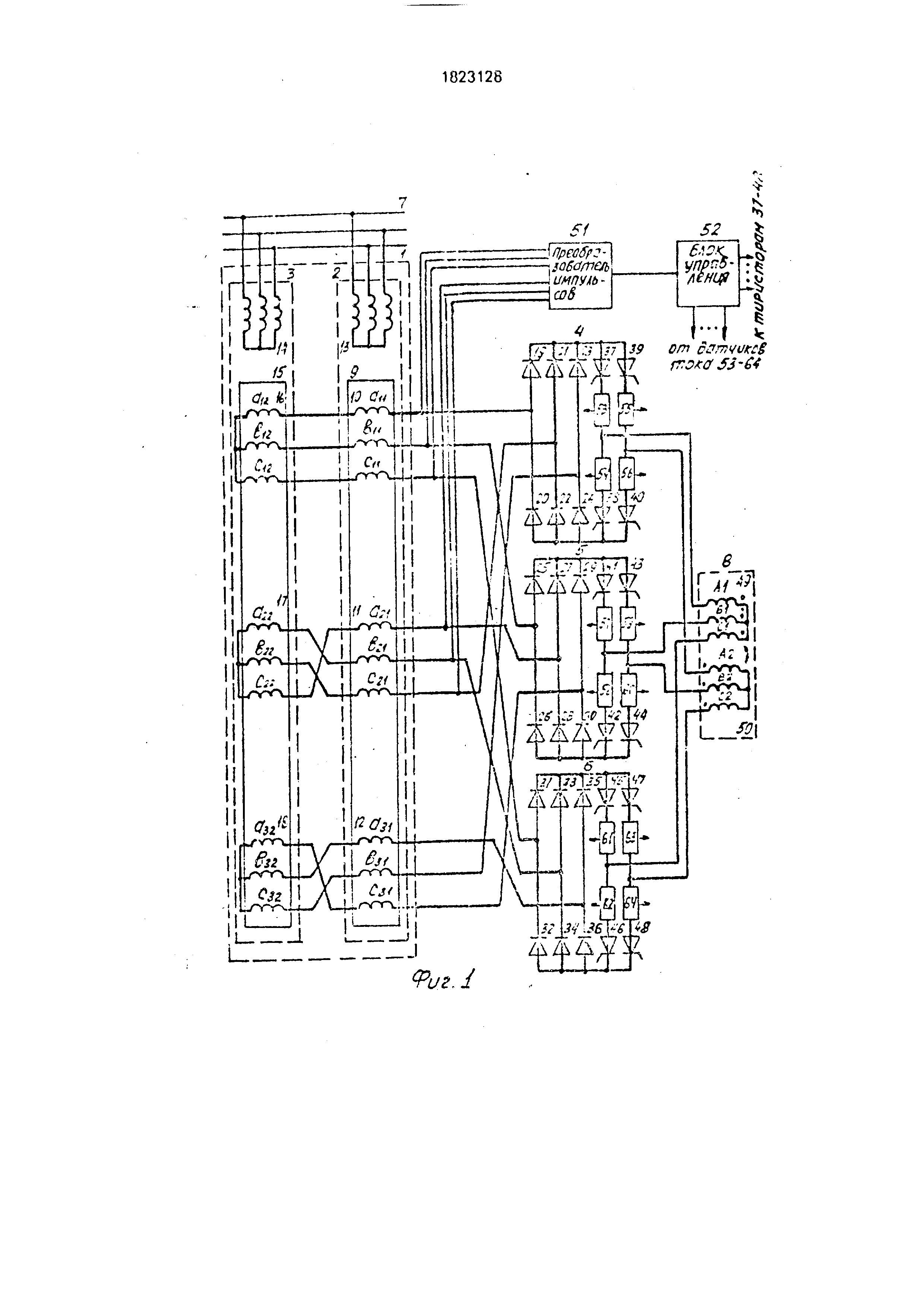 50 нагрузки 8 подключены к общей точке соединения тиристоров 39, 40; 43,44; 47, 48