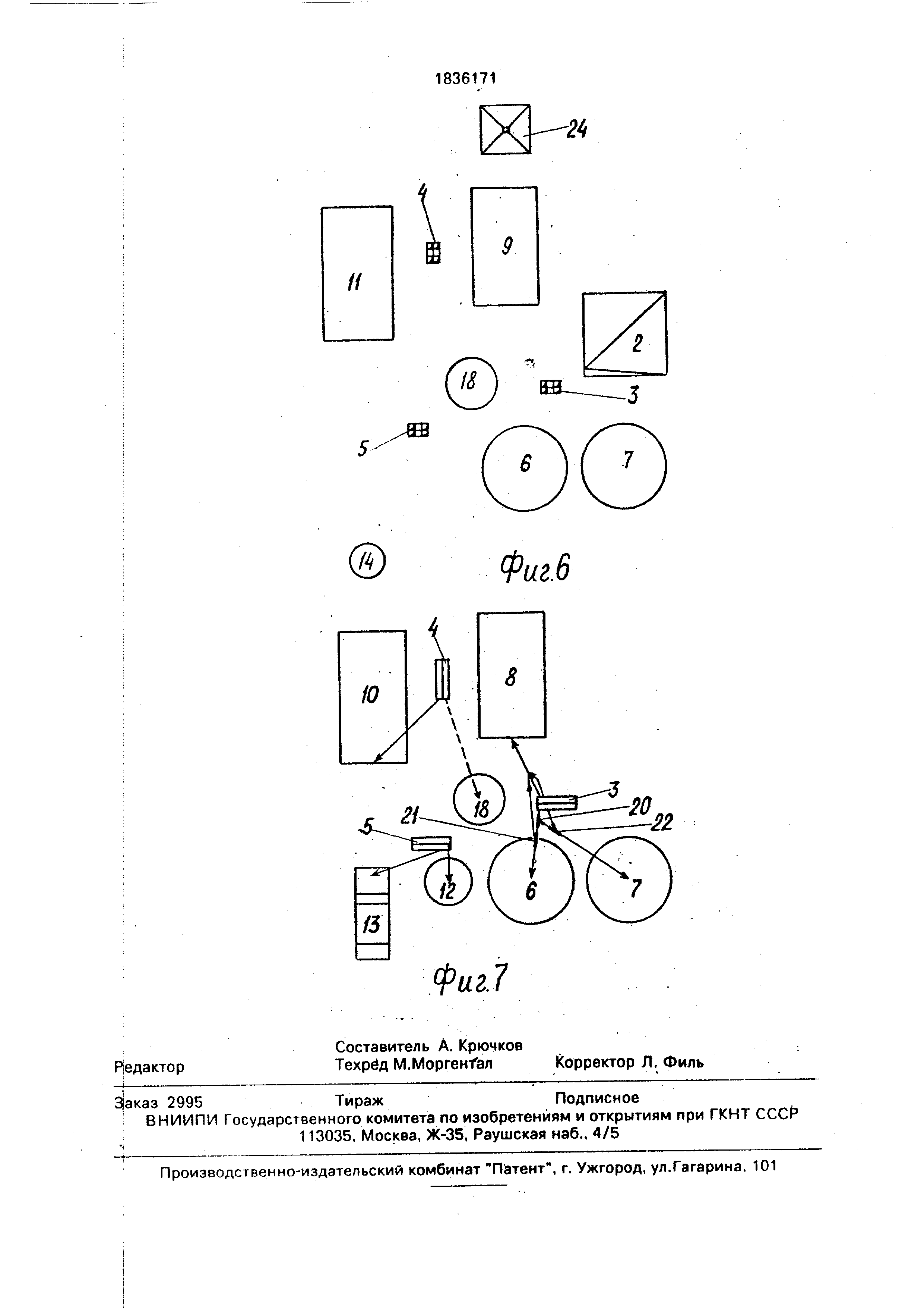 На фиг.1 изображена схема технологической линии; на фиг.2 - линия с размещеием оборудования, вид спереди; на фиг.З - иния, вид со стороны начала линии (с тора ); на фиг.4 - линия, вид с конца линии (со тороны мешка с семенами); на фиг.5 - линия , план 1-го этажа; на фиг.6 - линия, план 5 -го этажа; на фиг.7 - линия, план 3-го этажа ,
