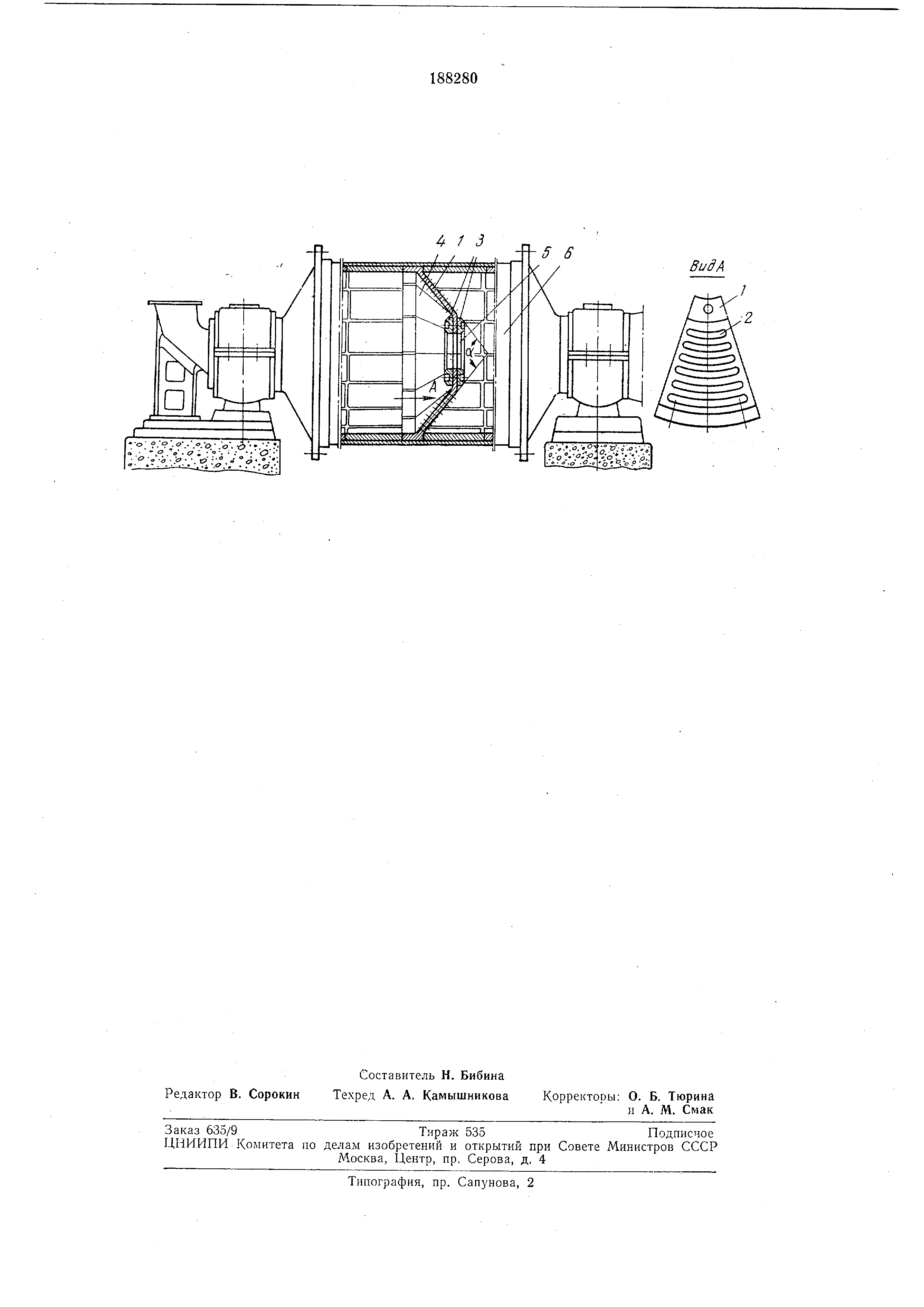 меньшим основанием 5 к разгрузочному концу мельницы 6.