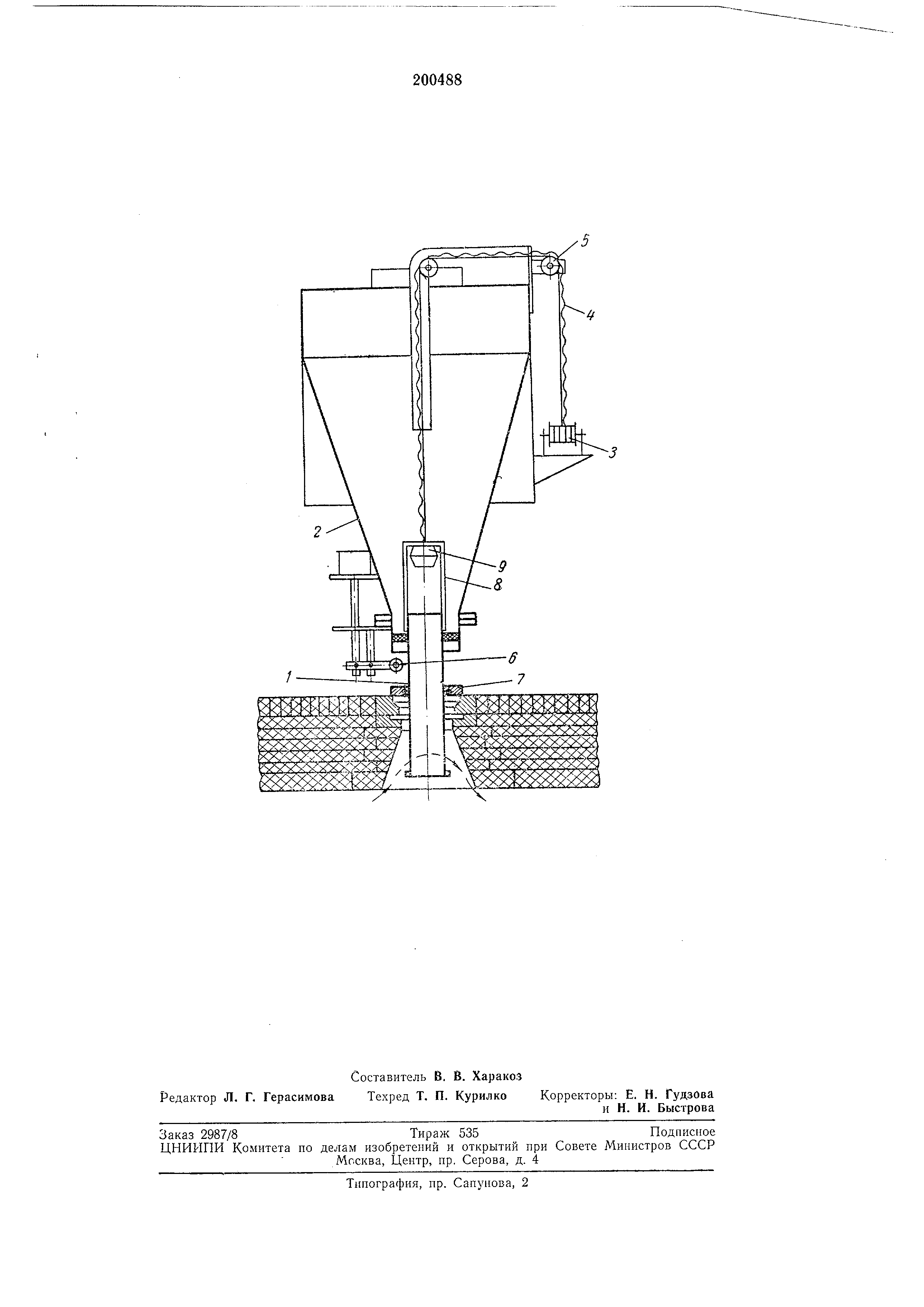 2, механизма нодъема 3 с цепью 4 и блоками 5, стопорного механизма 6, уплотнительной