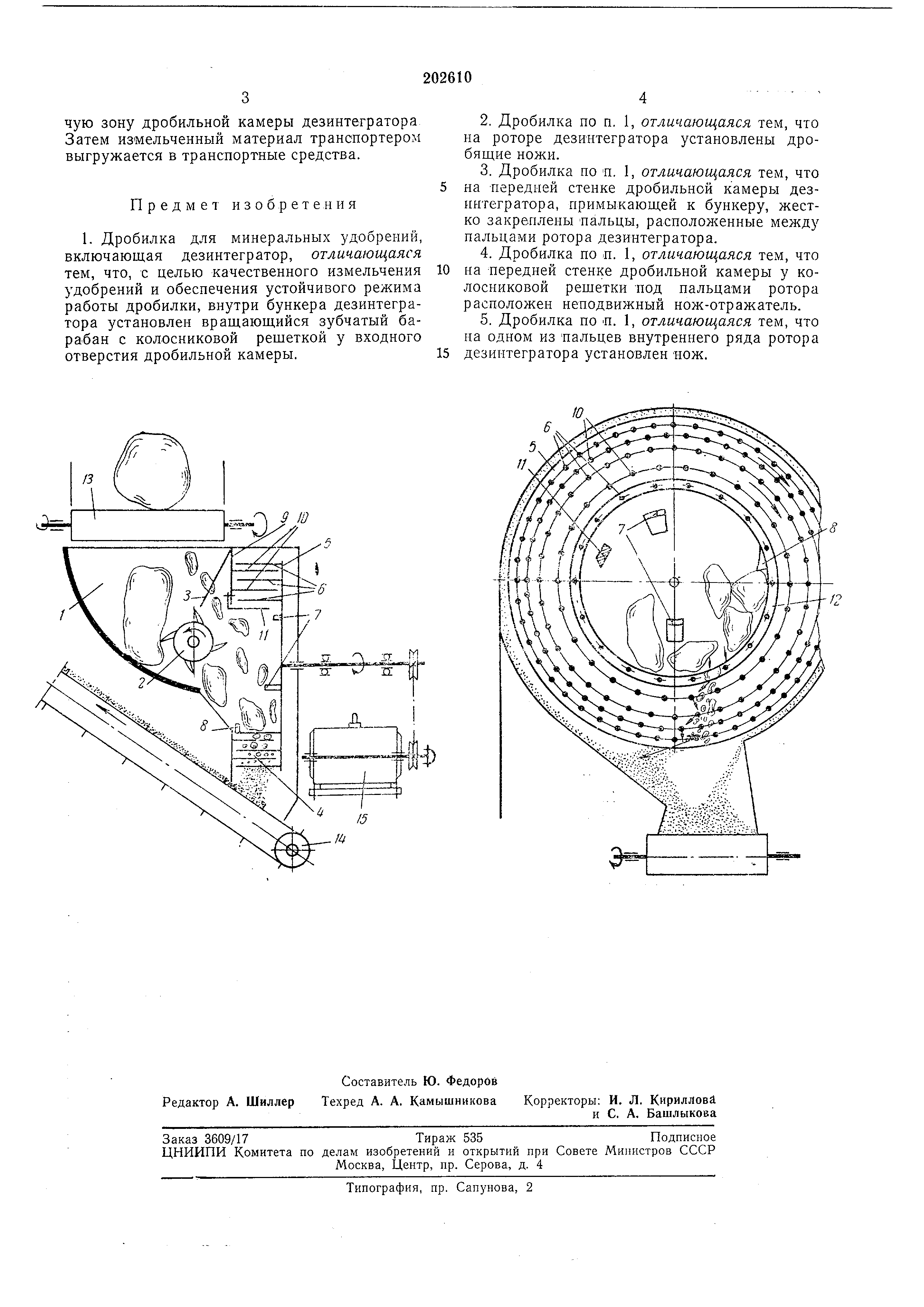 устойчивого режима работы дробилки внутри бункера дезинтегратора установлен вращающийся