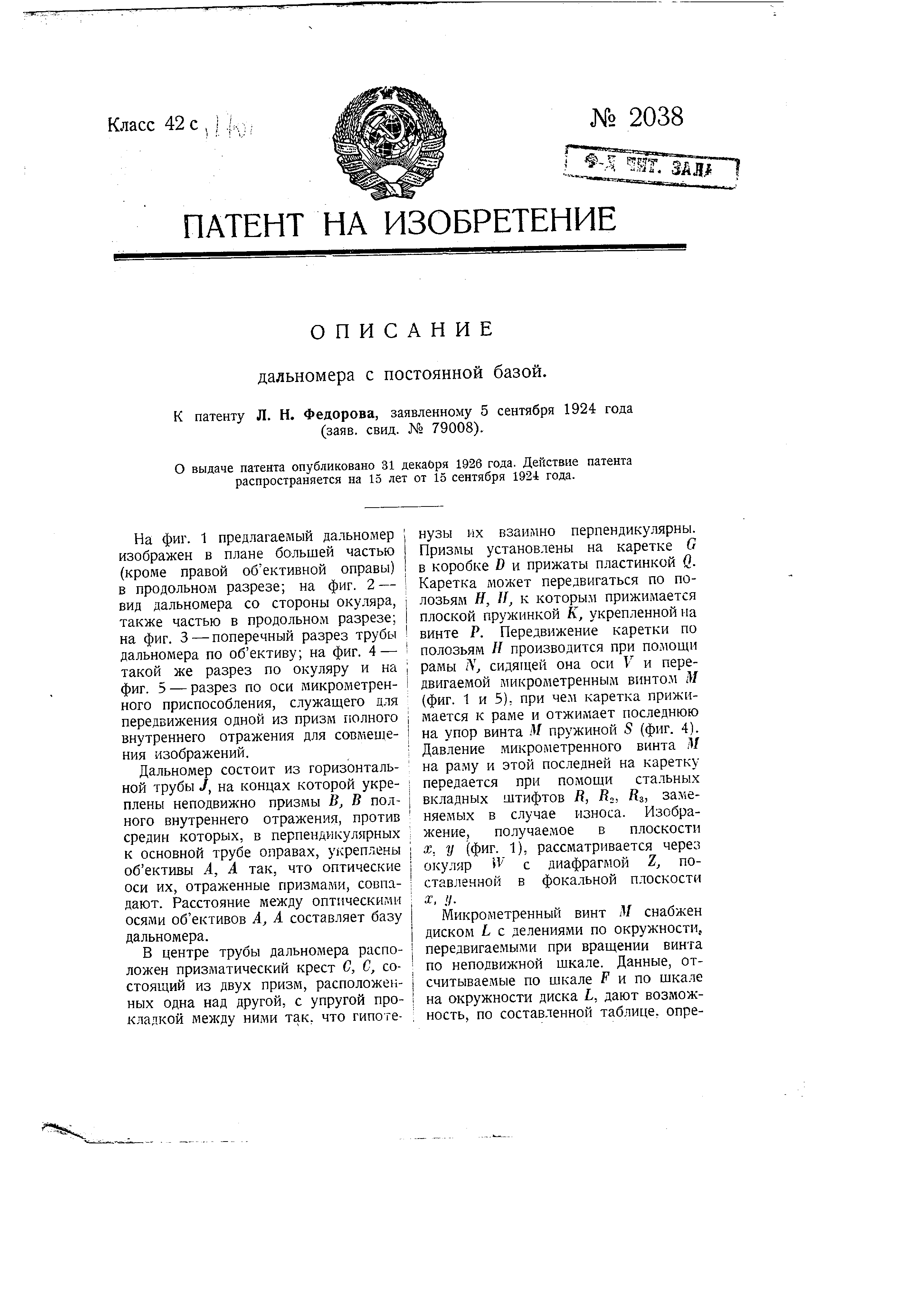 расстояние до наблюдаемого предмета. ПРЕДМЕТ ПАТЕНТА.