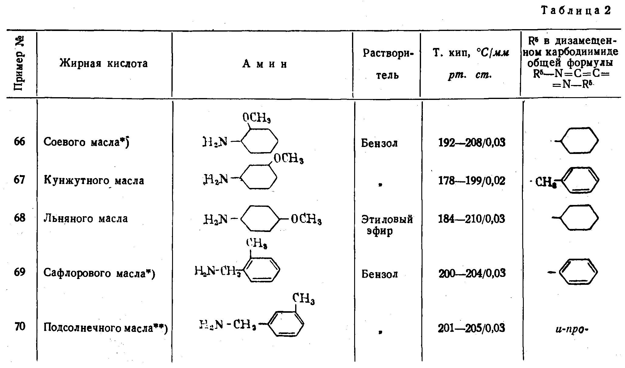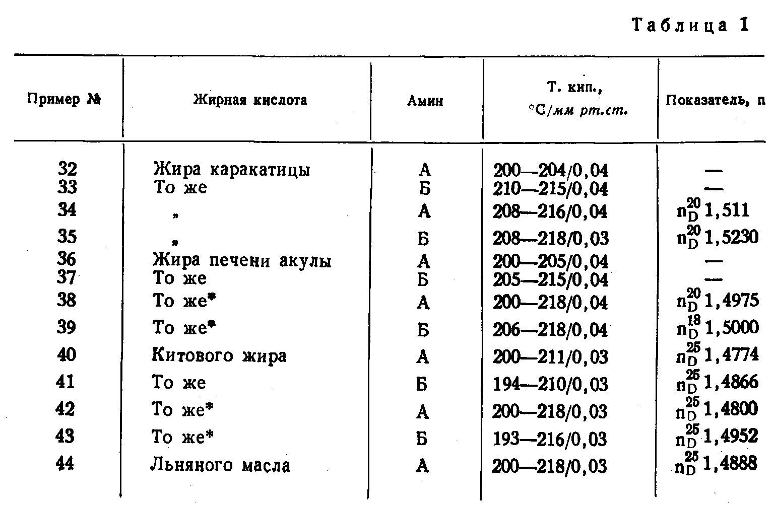 где R1 - остаток жирной кислоты, входящей в состав любого из масел: льняного, периллового, ойтикового, кайевого, масла грецких орехов, макового, сафлорового, арбузного, соевого, подсолнечного, масла из рисовых отрубей, тыквенного, гаолянового, кунжутного, кукурузного, сурепкового, хлопкового, оливкового, масла орехов кэшью, тоубакового, масла спорыньи, касторового, арахисового, пальмового, масла пальмовых орехов, кокосового, говяжьего жира, свиного сала, костяного, лошадиного жира, масла саранчи, масла из куколок бабочек, жира из печени акулы, масла каракатицы, сардинного, масла плоских рыб, ставриды, макрели, макрелещуки, сельди, трески, форели, серой барабульки, тунца, тепике, американской сельди, угря, менукового масла, китового жира; R2 - алкил, алкенил, цикло-, алкилцикло-, оксицикло-, алкоксициклоалкил, арил, аралкил, окси-, алкокси-, галоид-, галоидалкил-, алкоксигалоид-, галоидалкилгалоидарил, алкил-, окси- и алкоксиаралкил; R3 - водород и все значения R2 или R2 и R3 совместно представляют собой R4, являющийся алкиленом, алкениленом или кислородсодержащим алкиленом с общим числом углеродных атомов до 7 включительно, отличающийся тем, что, с целью получения веществ, обладающих физиологически активным действием, вышеупомянутую жирную кислоту природного происхождения подвергают взаимодействию с амином общей формулы, где R2 и R3 имеют вышеуказанные значения, в присутствии дизамещенного карбодиимида с последующим выделением целевого продукта обычными приемами.