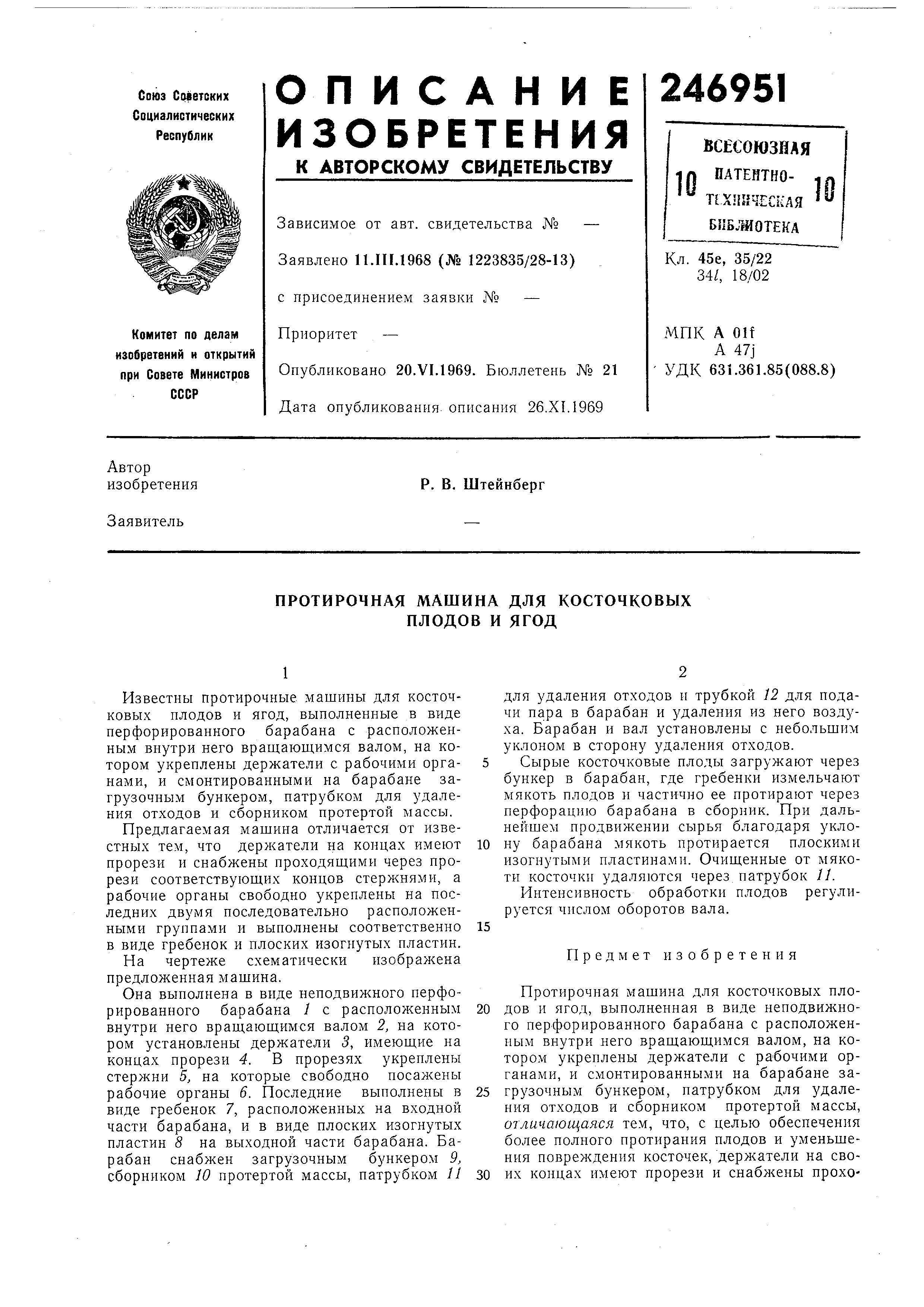 мякоть плодов и частично ее протирают через перфорацию барабана в сборник. При дальнейшем