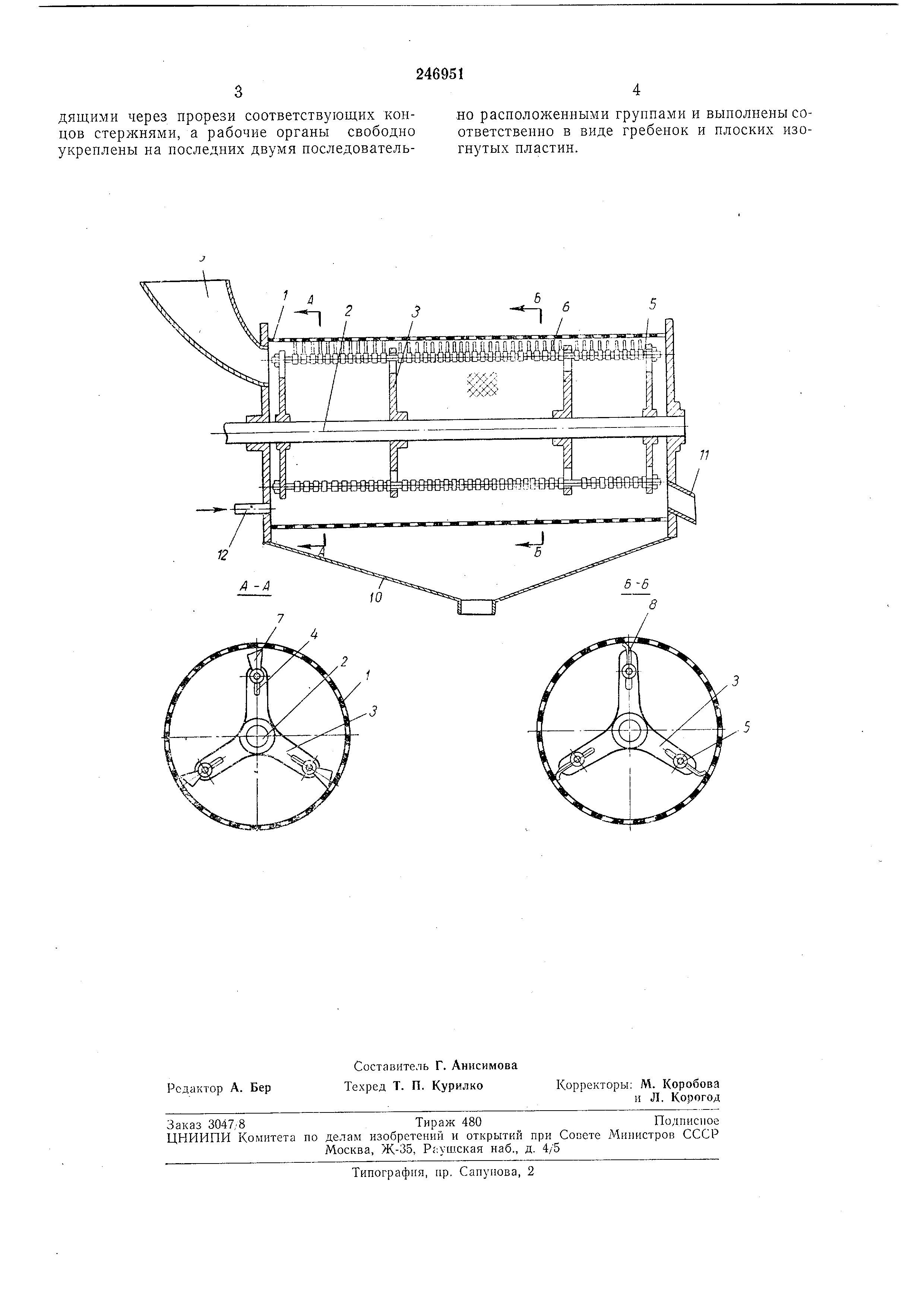 изогнутыми пластинами. Очищенные от мякоти косточки удаляются через патрубок 11.