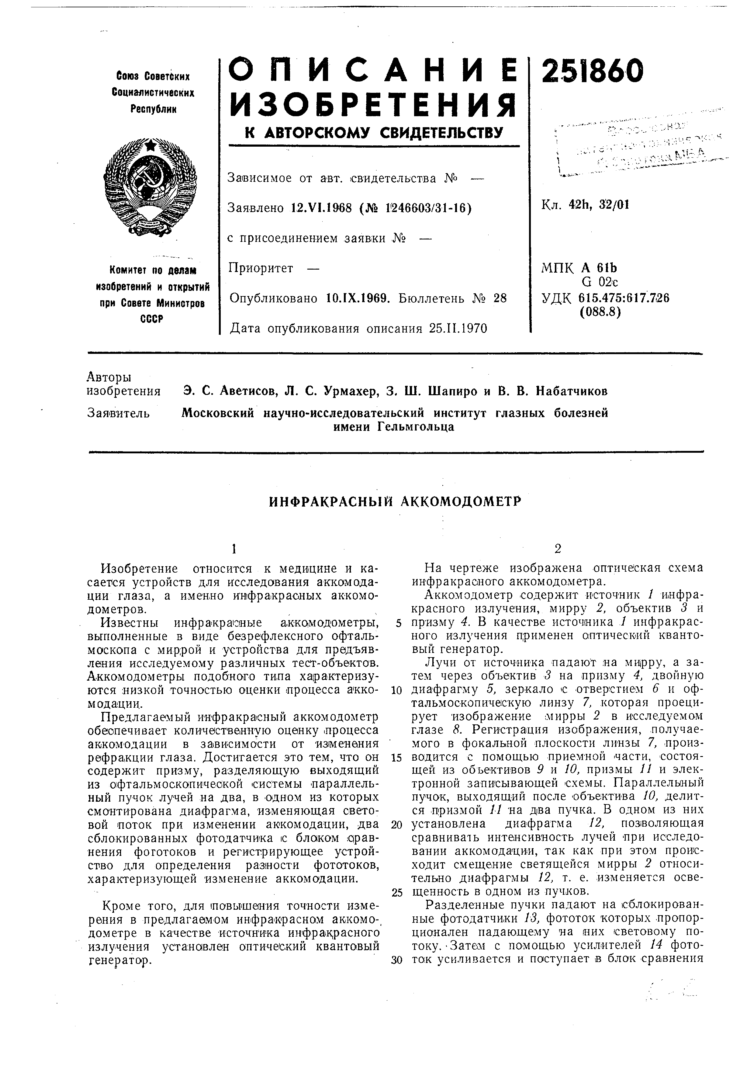 низкой точностью оценки процесса аккомодации . Предлагаемый инфракрасный аккомодометр