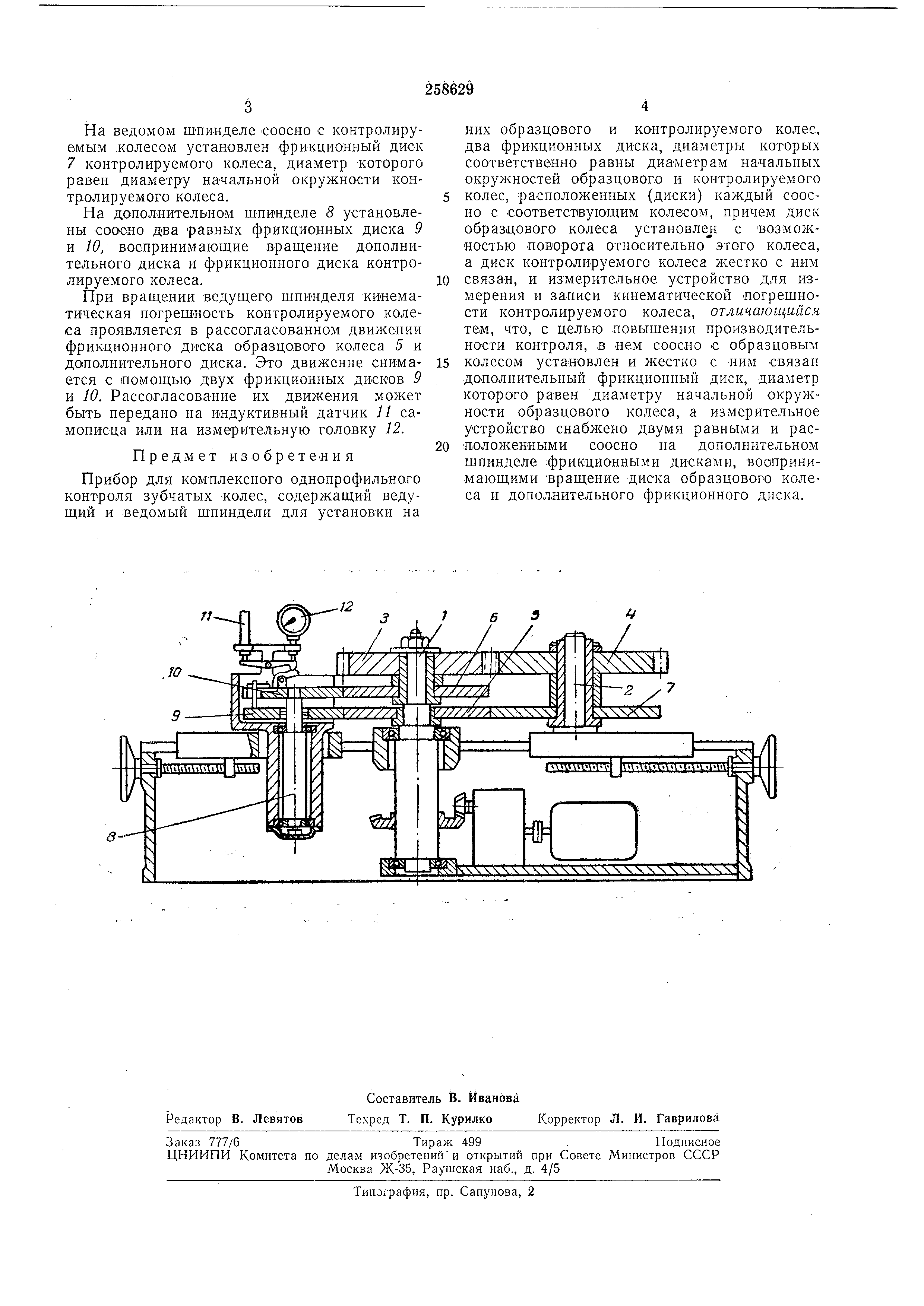 устройство снимает движение с начальных окружностей образцового и контролируемого колес-. Таким образом, предлагаемый прибор позволяет избавиться от пересчета результатов