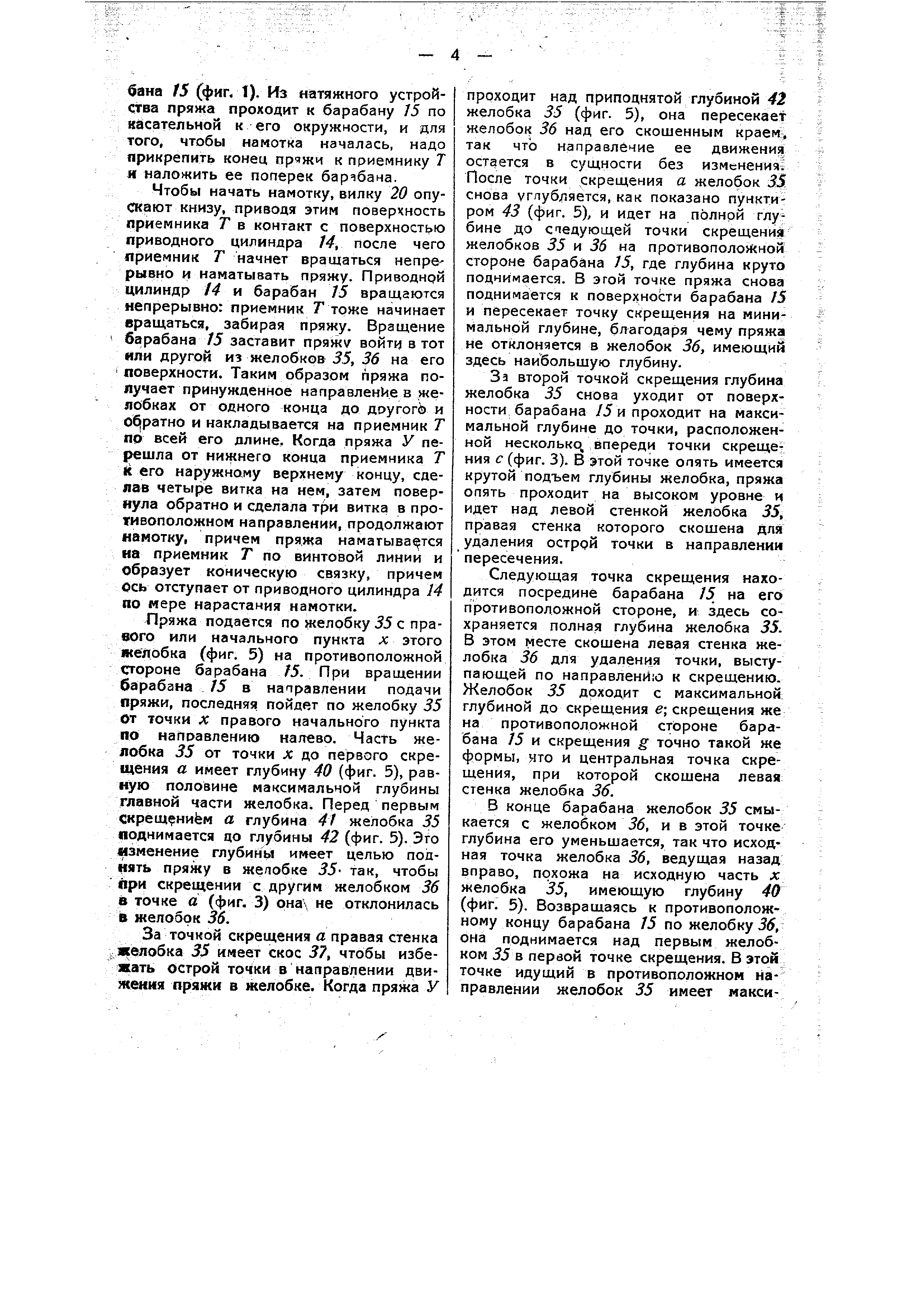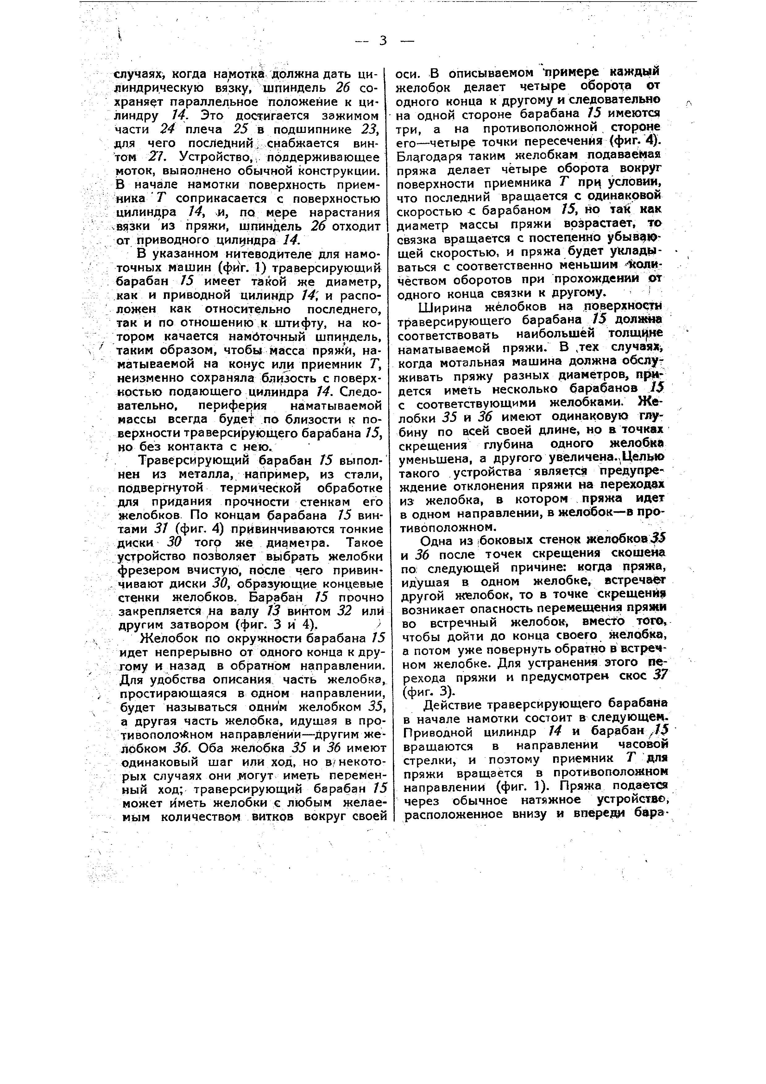 пряжи и предусмотрен скос 37 (фиг. 3). Действие траверсирующего барабана