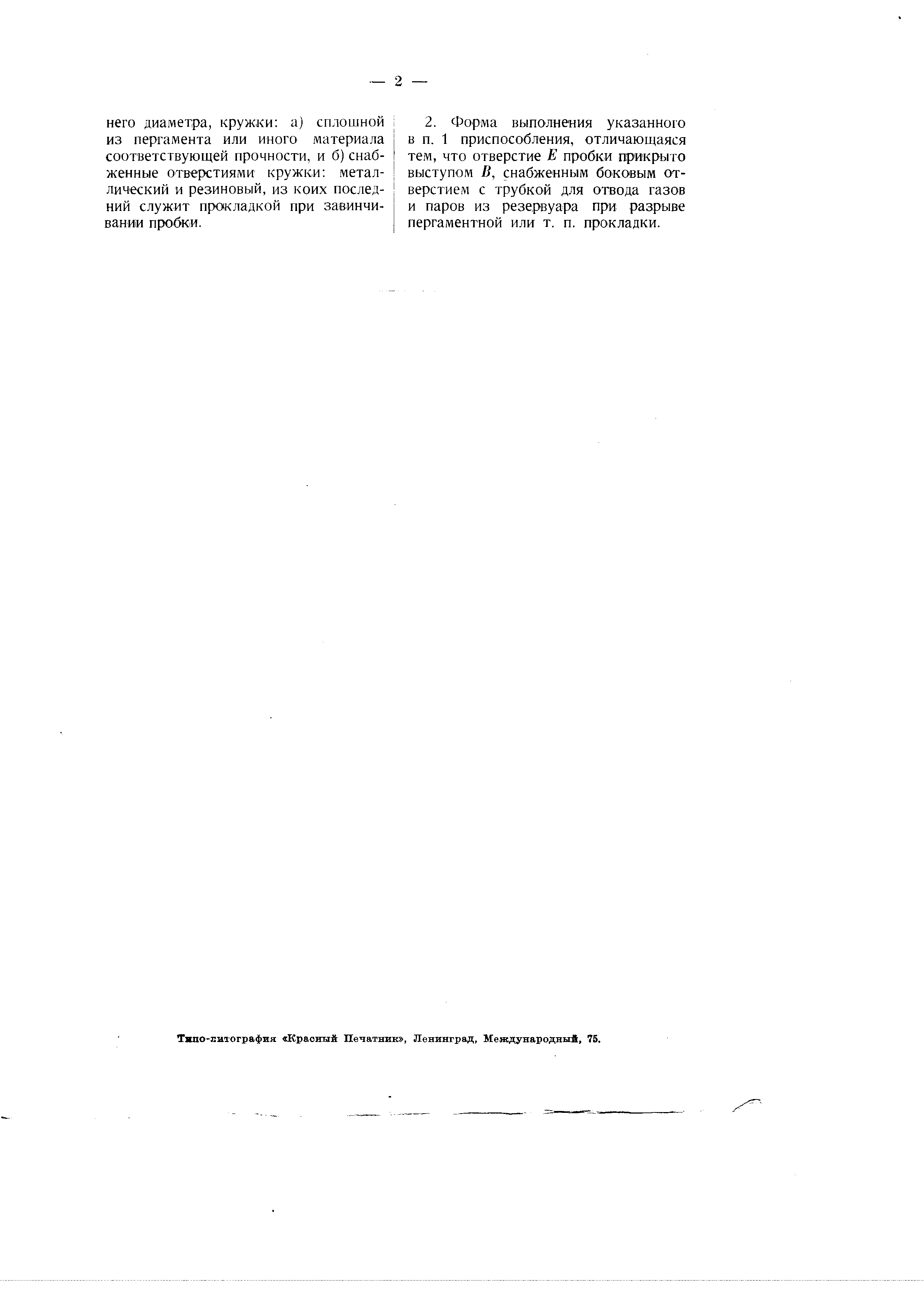 кружок. Другая форма выполнения (фиг. 2) состоит в том, что отверстие Е пробки