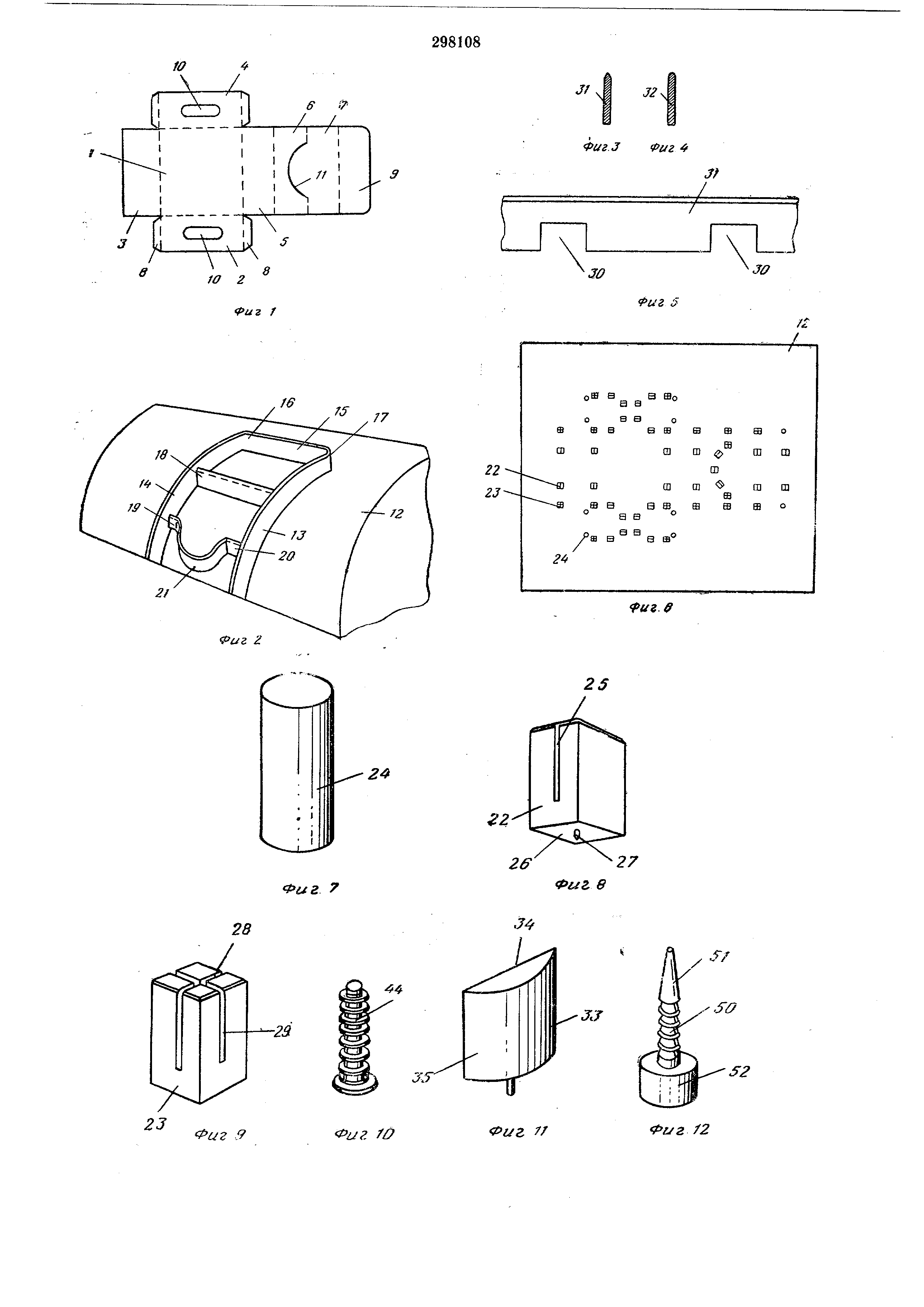 Штифты 24 (см. фиг. 7) представляют собой в основном цилиндрическую стойку, в нижней части которой также имеется выступ или прилив.