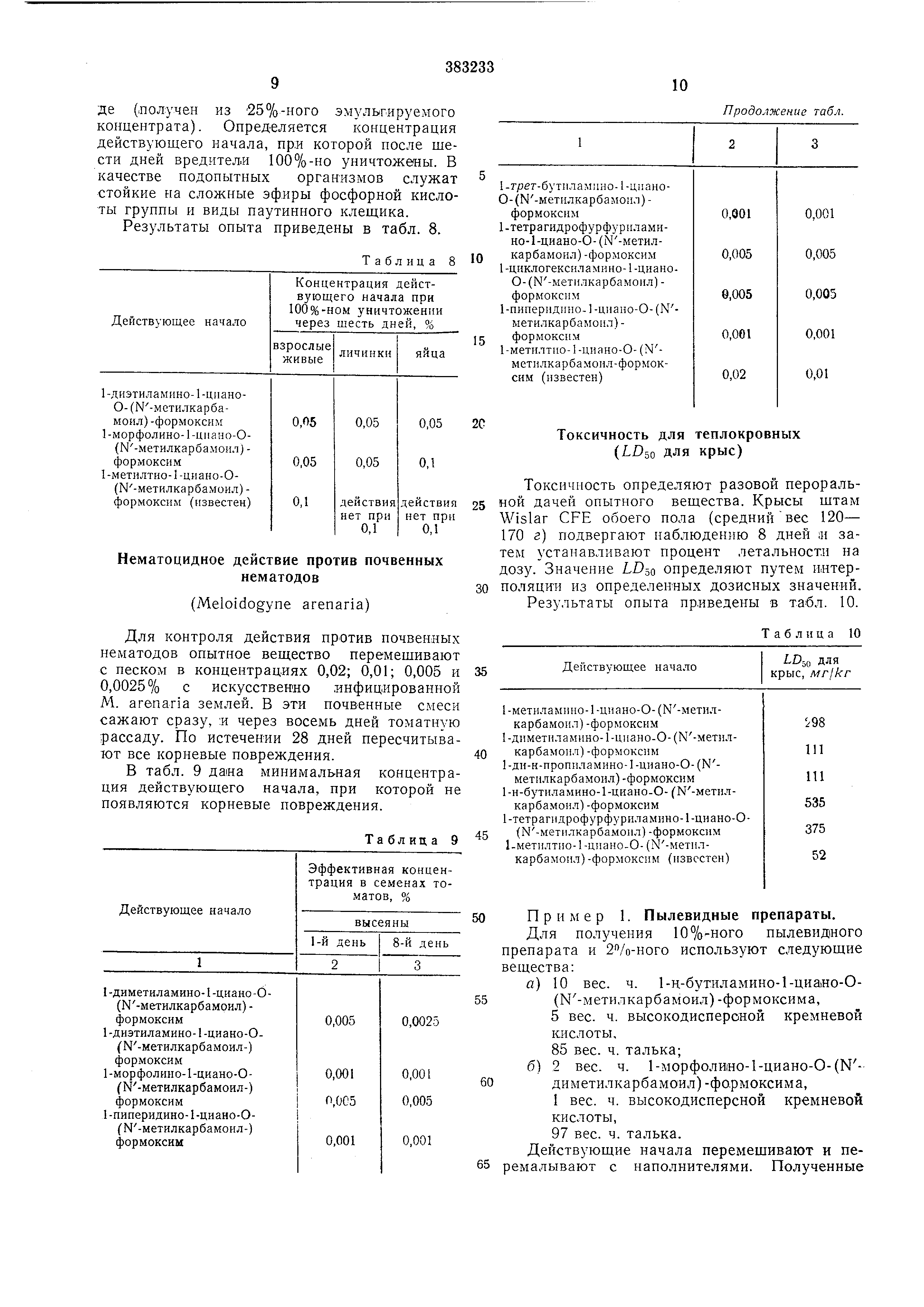 85 вес. ч. талька; б)2 вес. ч. 1-морфолино-1-циано-О-(Nдиметилкарбамоил )-формоксима,
