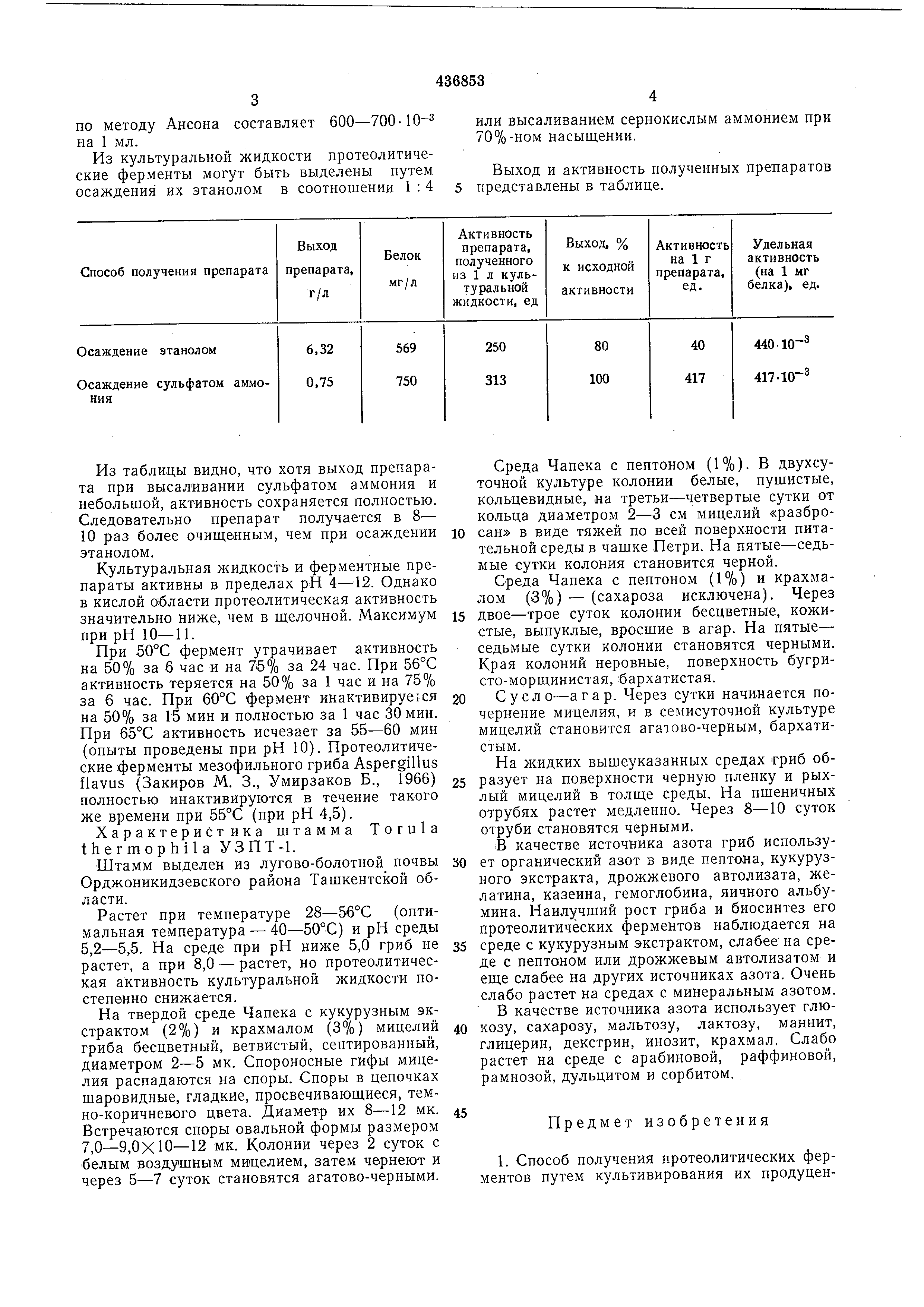 . Известны способы получения протеолитических ферментов путем культивирования их