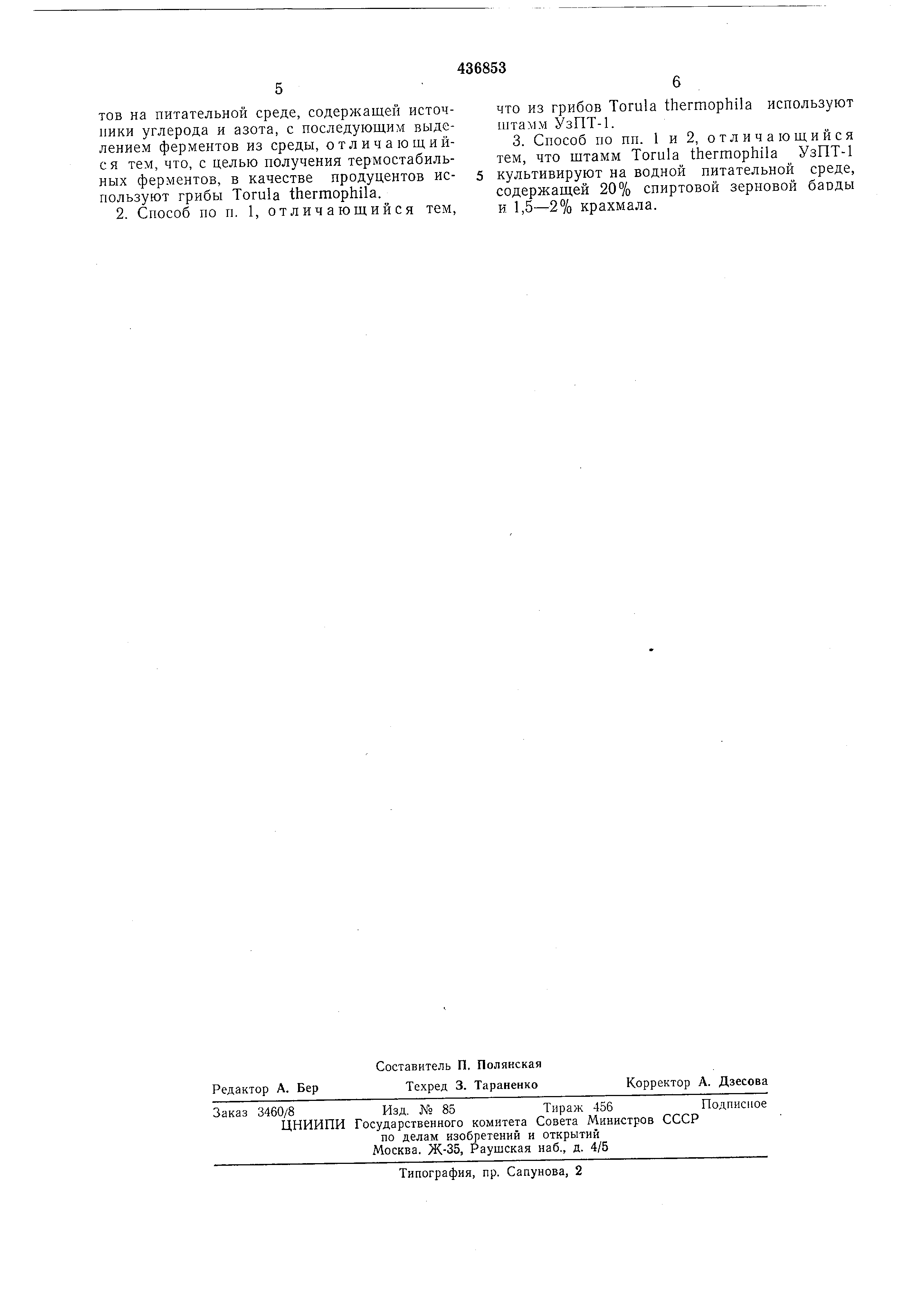 ферментов, в качестве продуцентов ис-5 пользуют грибы Torula thermophila.