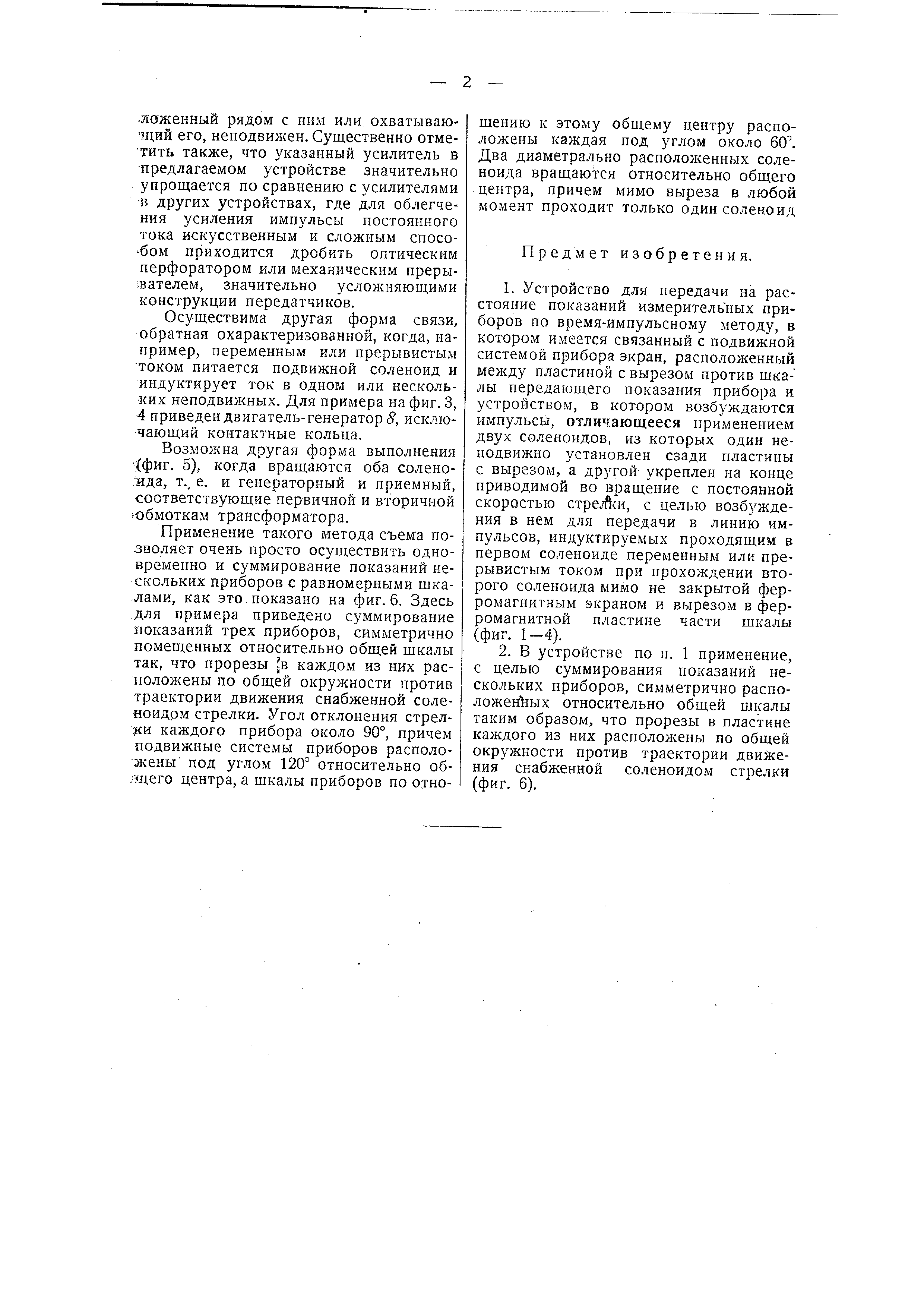 Предмет изобретения. 1.Устройство для передачи на расстояние