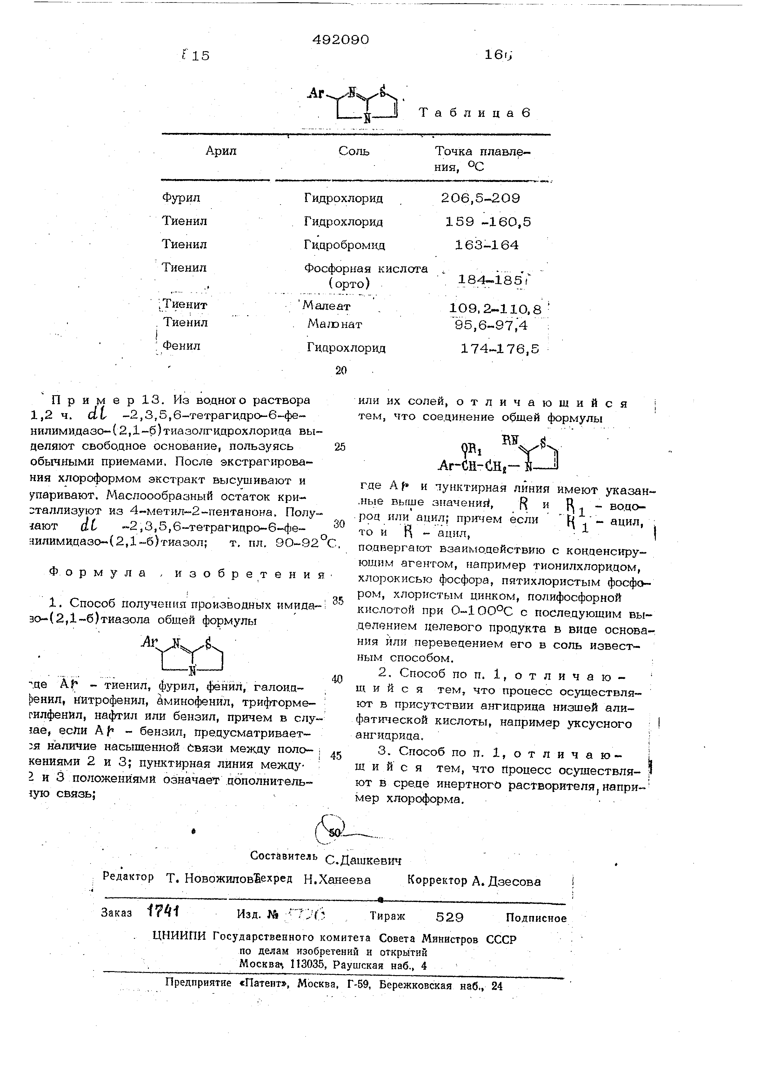 6«.§амещенным 5,6-дигддроимидаао- (2,1-б)-тиазолом, получают соединения, перечисленные в €абл. 6,