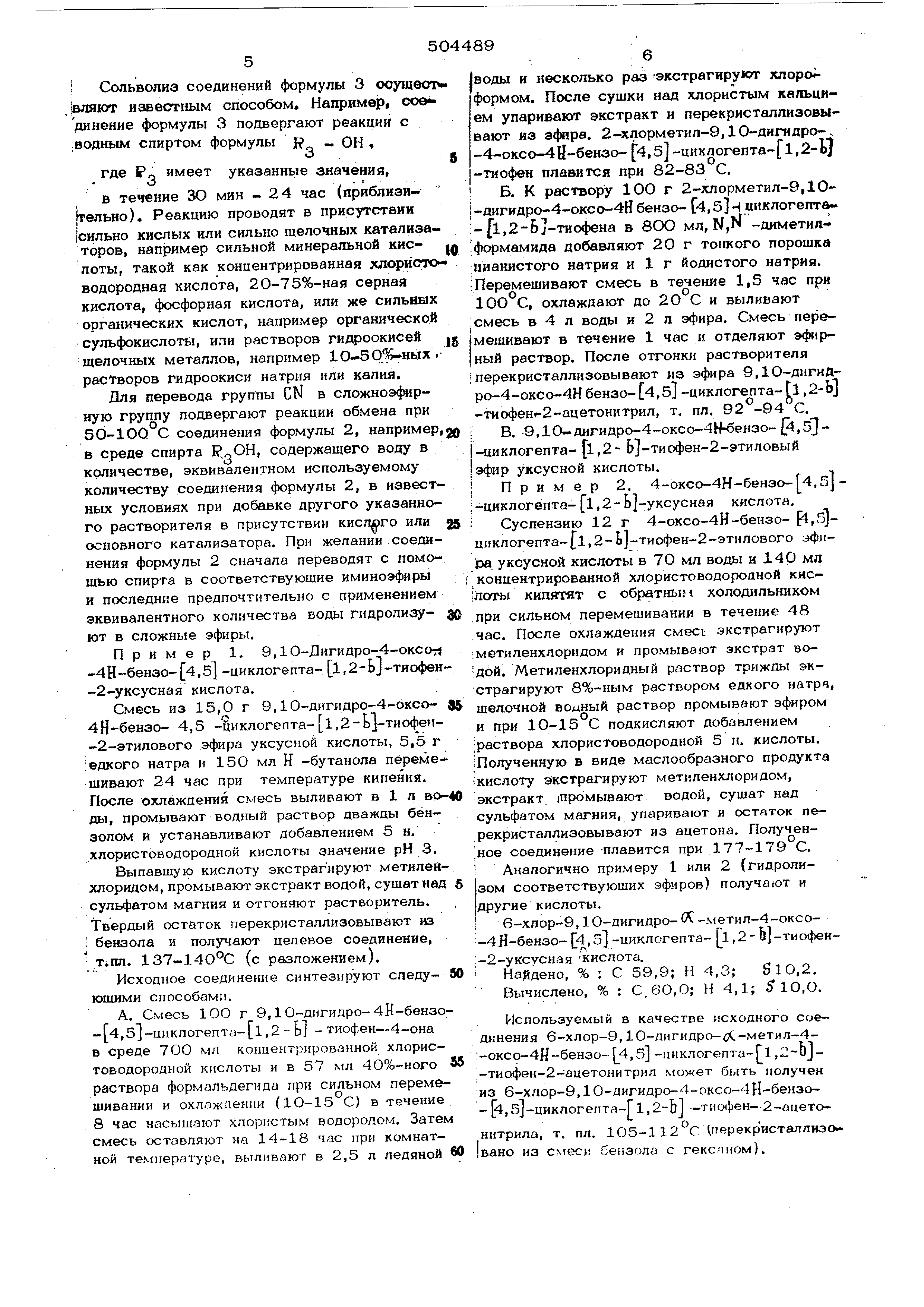 Пример 5. 7-Хлор-9,1О-дагидро-4-ОКСО-4Н -бензо- С4,5 :-цнклогепта- 1,2-Й -тиофен-2-уксусиая кислота,