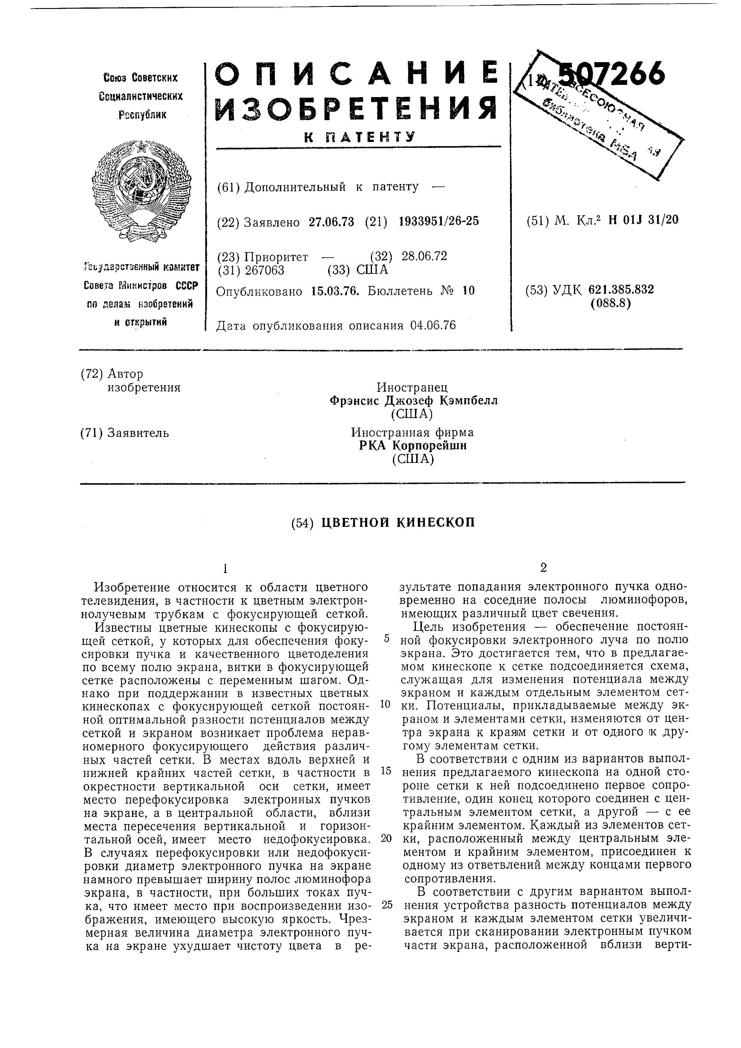 (54) ЦВЕТНОЙ КИНЕСКОП