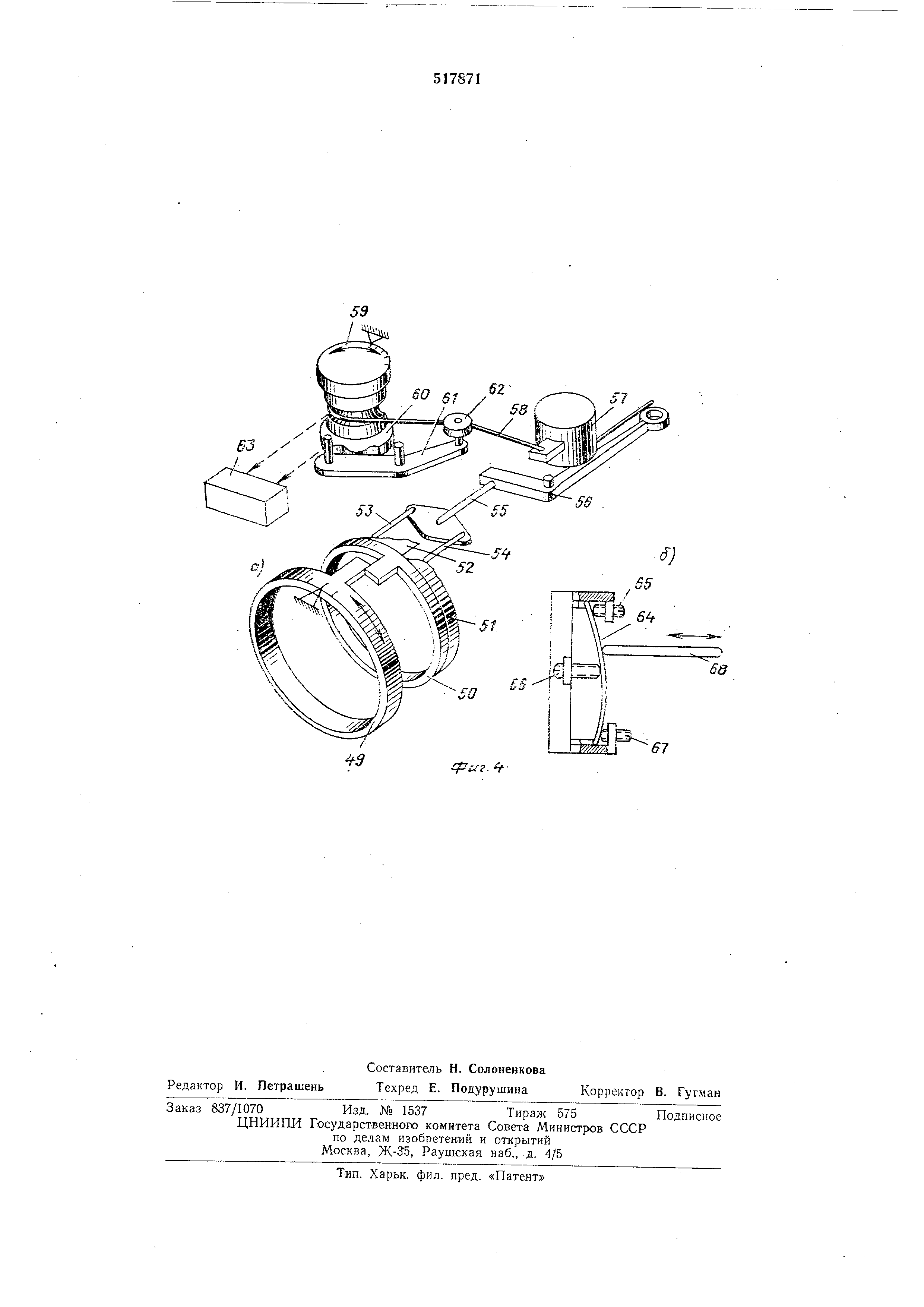поправку (фиг. 4, вид а) тем, что вместо кулачкОВ 51 и 52 устанавливается один кулачок