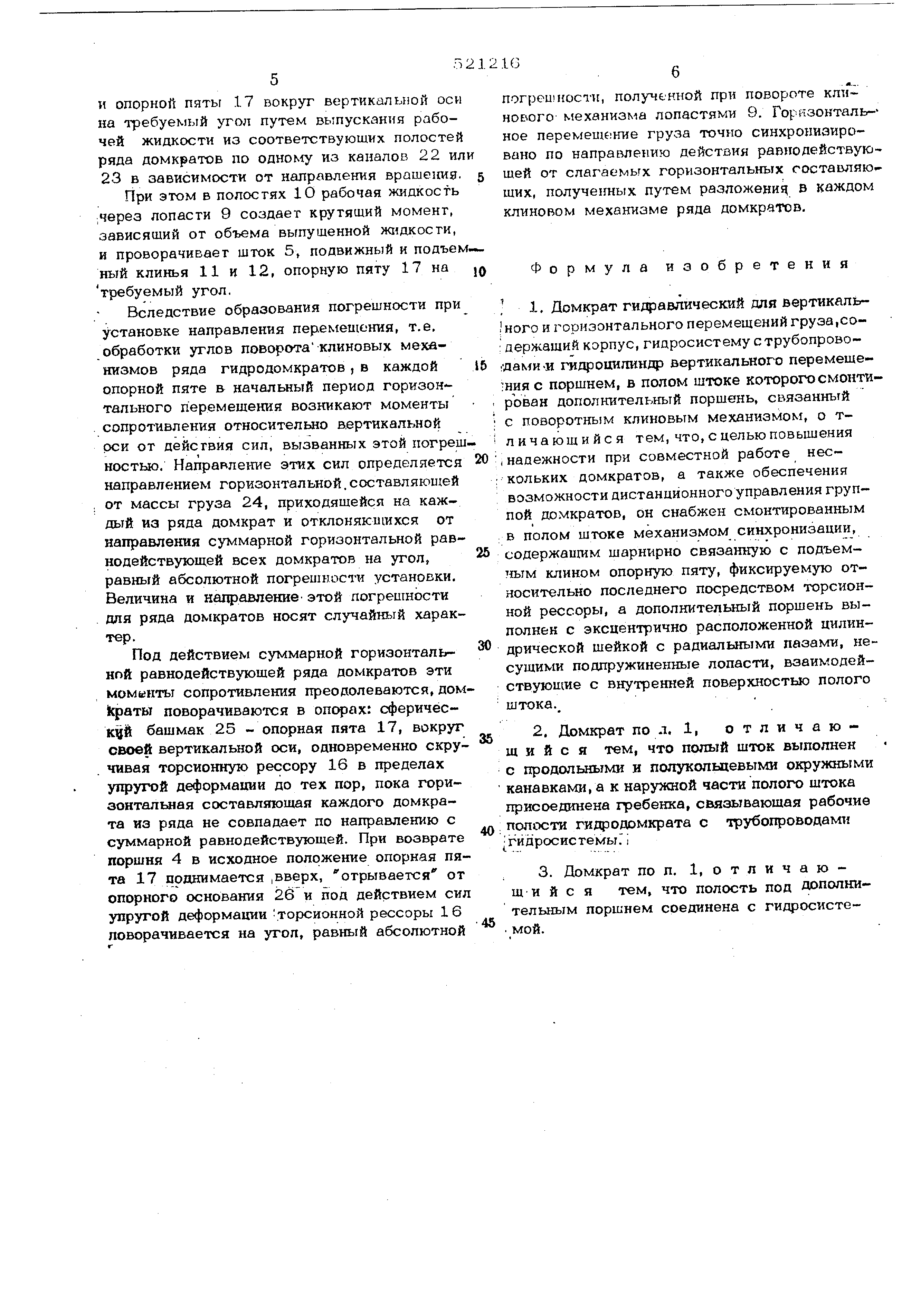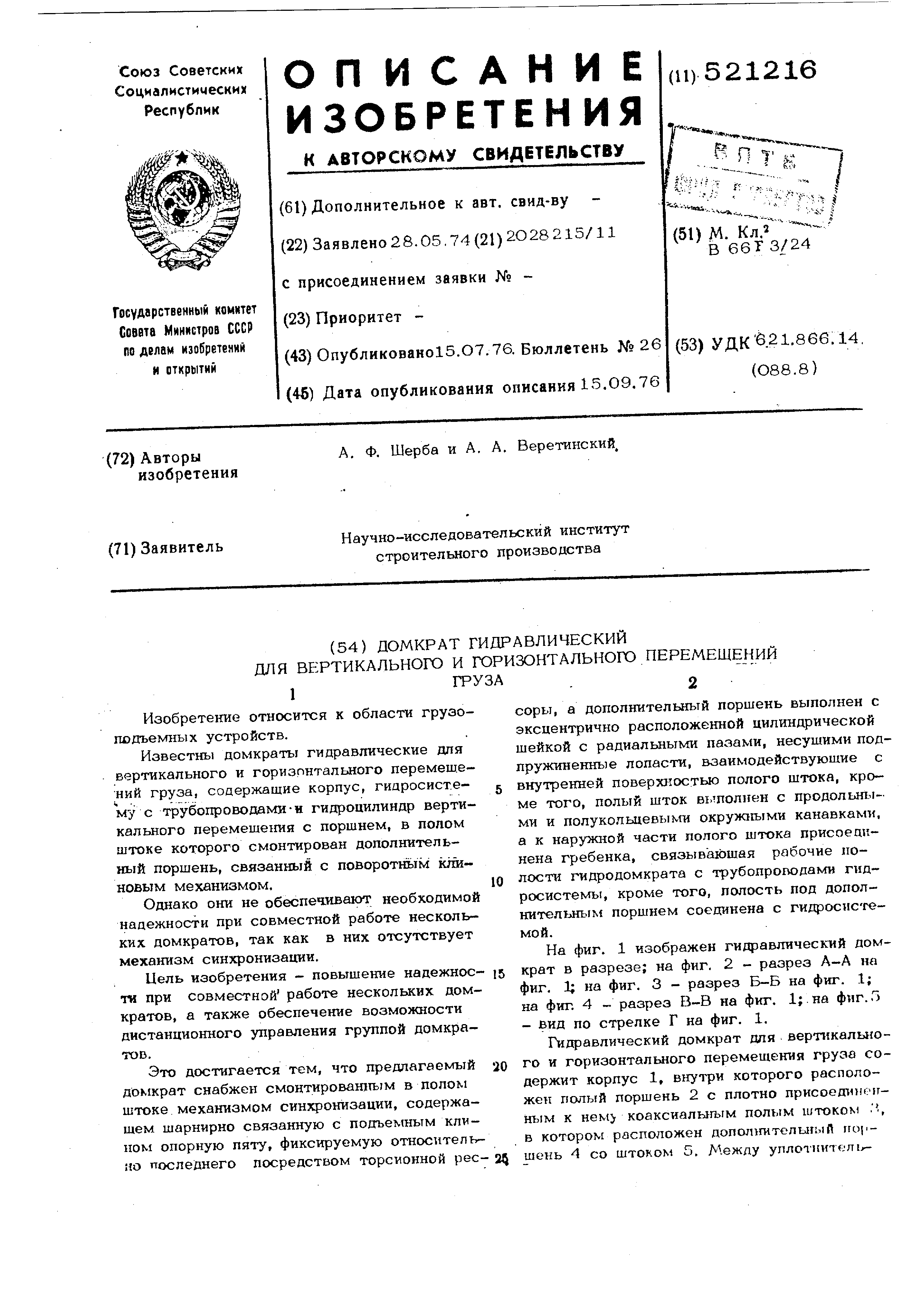 домкратов, он снабжен смонтированным : в полом штоке механизмом синхронизации,