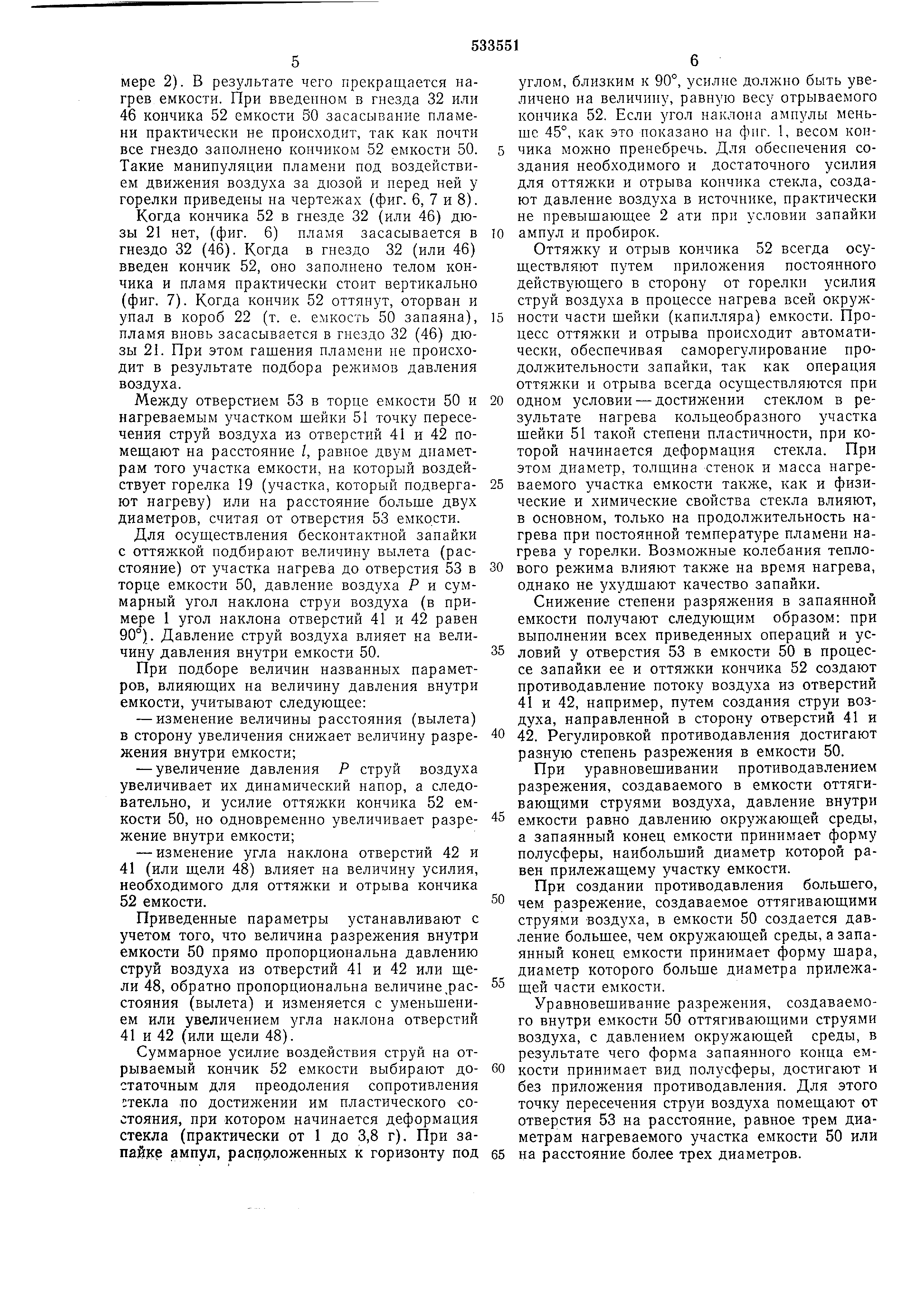 (фиг. 7). Когда кончик 52 оттянут, оторван и упал в короб 22 (т. е. емкость 50 запаяна),