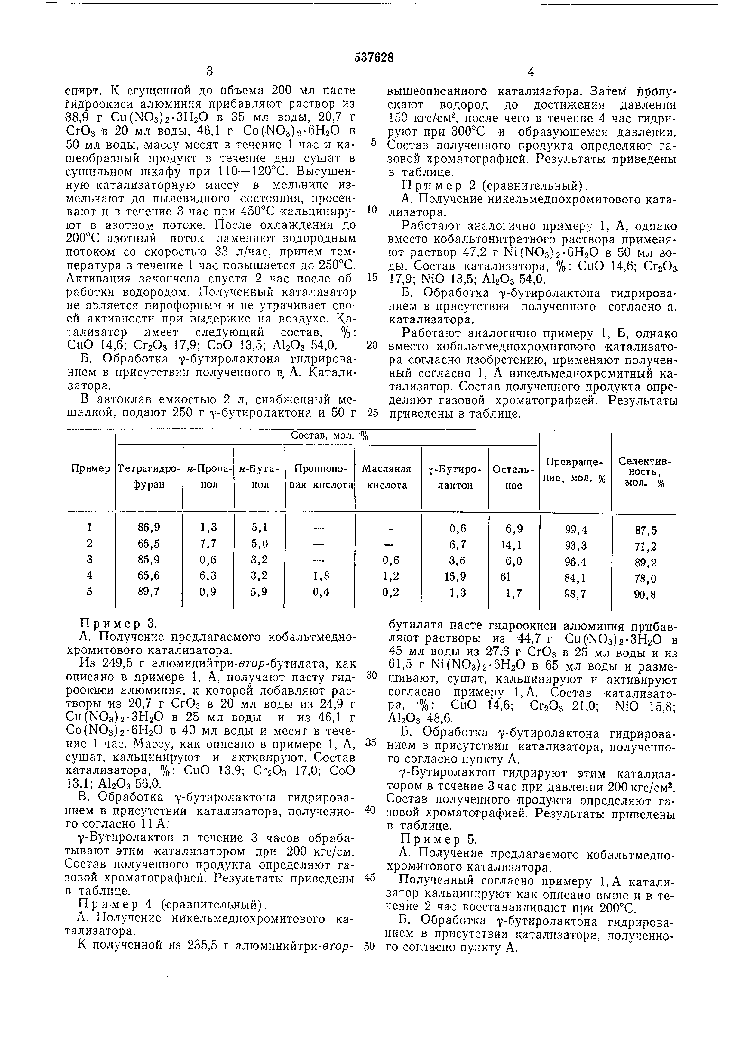 17,9; NiO 13,5; АЬОз 54,0. Б. Обработка -убутиролактона гидрированием