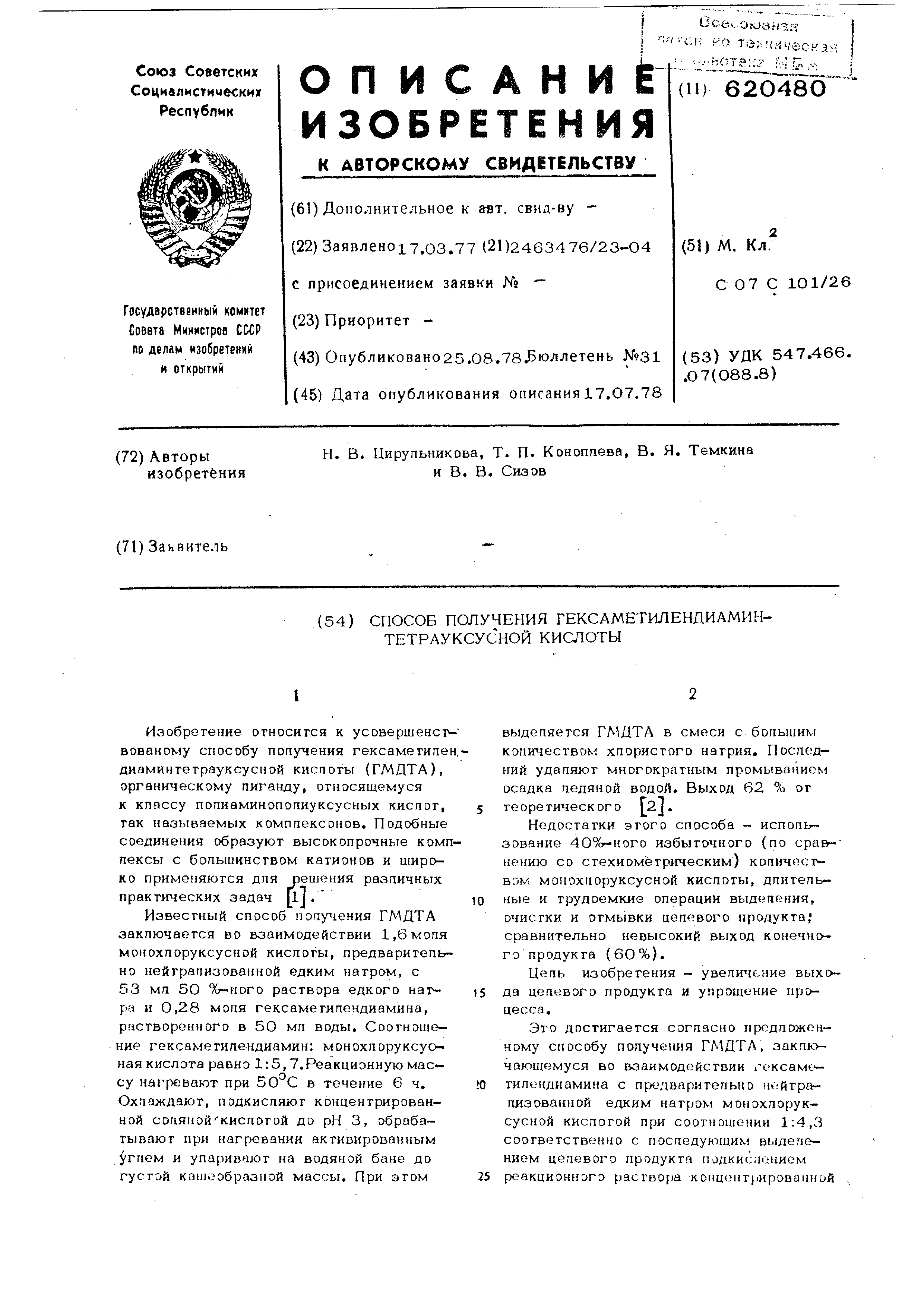 вованому способу попучения гексаметипедиаминтеграуксусной киспогы (ГМДТА),