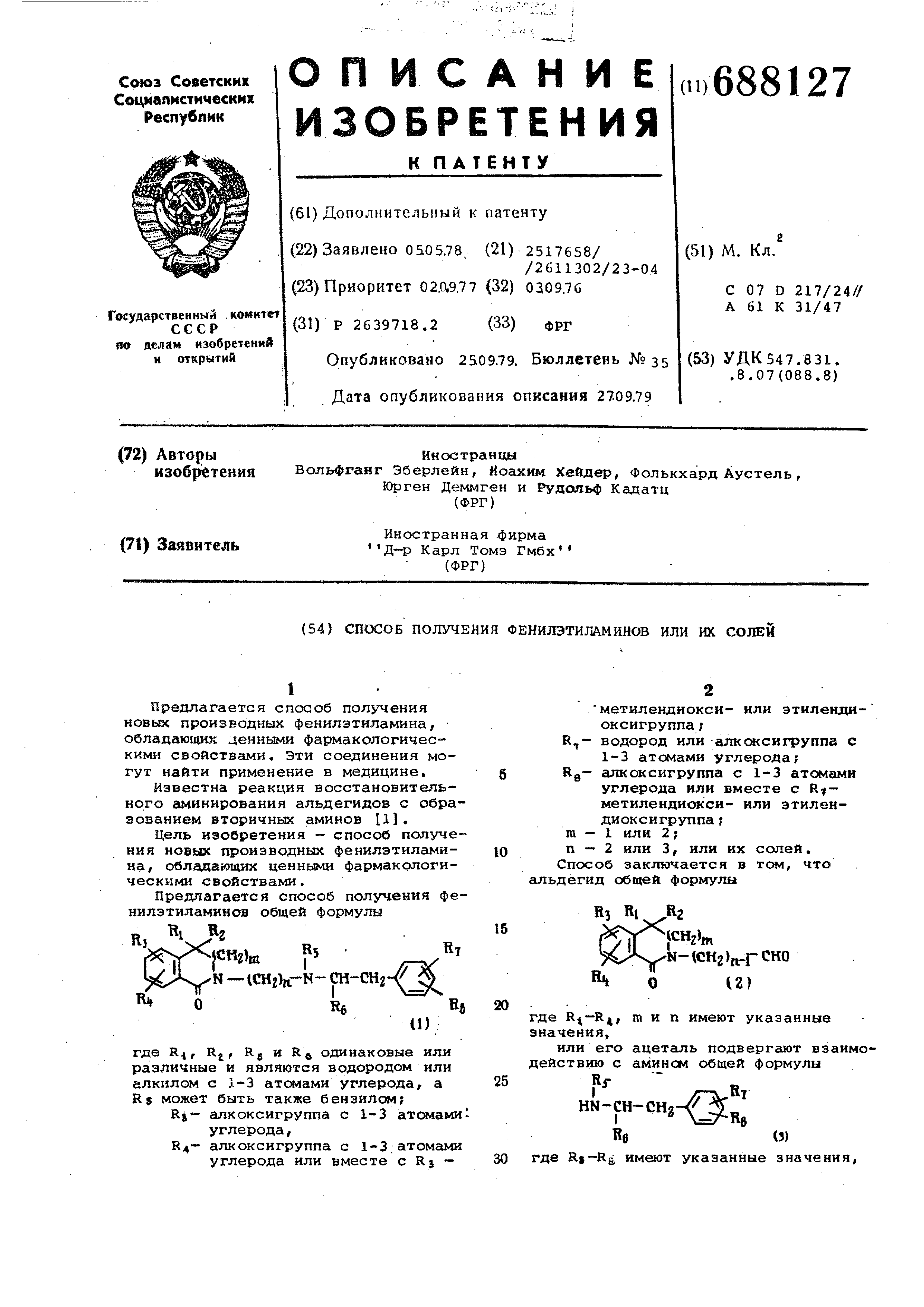 ния новых производных фенилэтиламина , обладающих ценными фармакологическими свойствами.