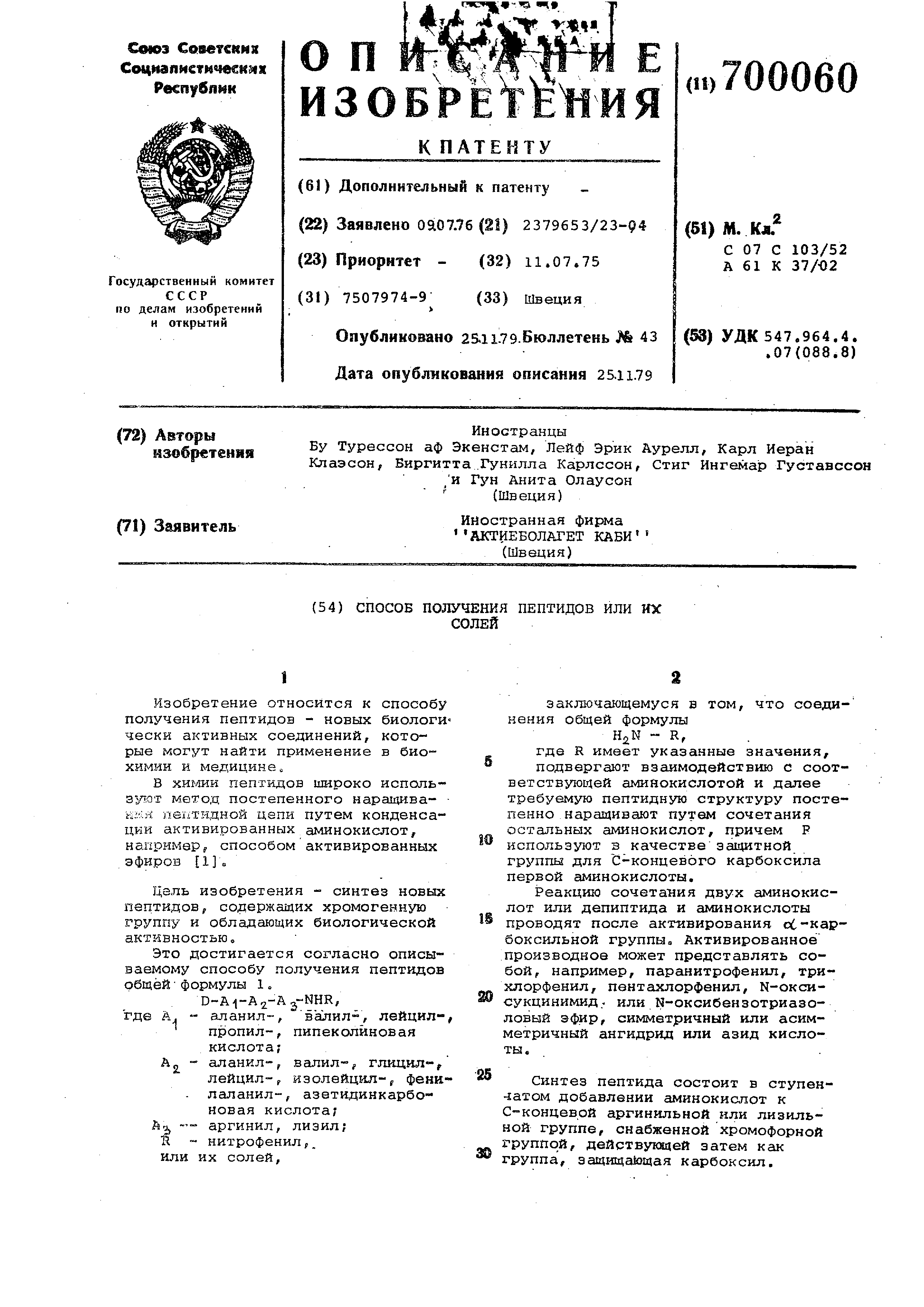 Аминокислоты {в левовращающей форма, кроме особо отмеченных случаев ) г Apr аргинин;Азо - 2-азе ,тидинкарбоновая кислота; Ала - алаНИН Гли - глицин Иле - изолейцин; Лей -- лейцин; Лиз - лизин; Фе - феНилаланин; Пип - пипеколиновая кислота; Про пролин; Вал - валик; АцОН - уксусная кислота; Бз - бенЗоил; КБо - карбобензокси; ДЦКИ дицикло;е ексилкарбОдиимид; ДМФ димвтилформамид; ТЭА - триэтиламин; ЭА этилацетат; ГФХ - хроматография с фильтрованием через гель; ОБТ - Й-оксибензотриазол; Осу 4/-ОКСИСУ1СЦИНИМИД .; МеОН - метанол; ПЫФ - паранитрофенокси; ПНА - паранитроанилид; ТБК - трет.-бутилоксикарбонил; ТФУК - трифторуксусная кислота ТСХ - хроматография в тонком слое