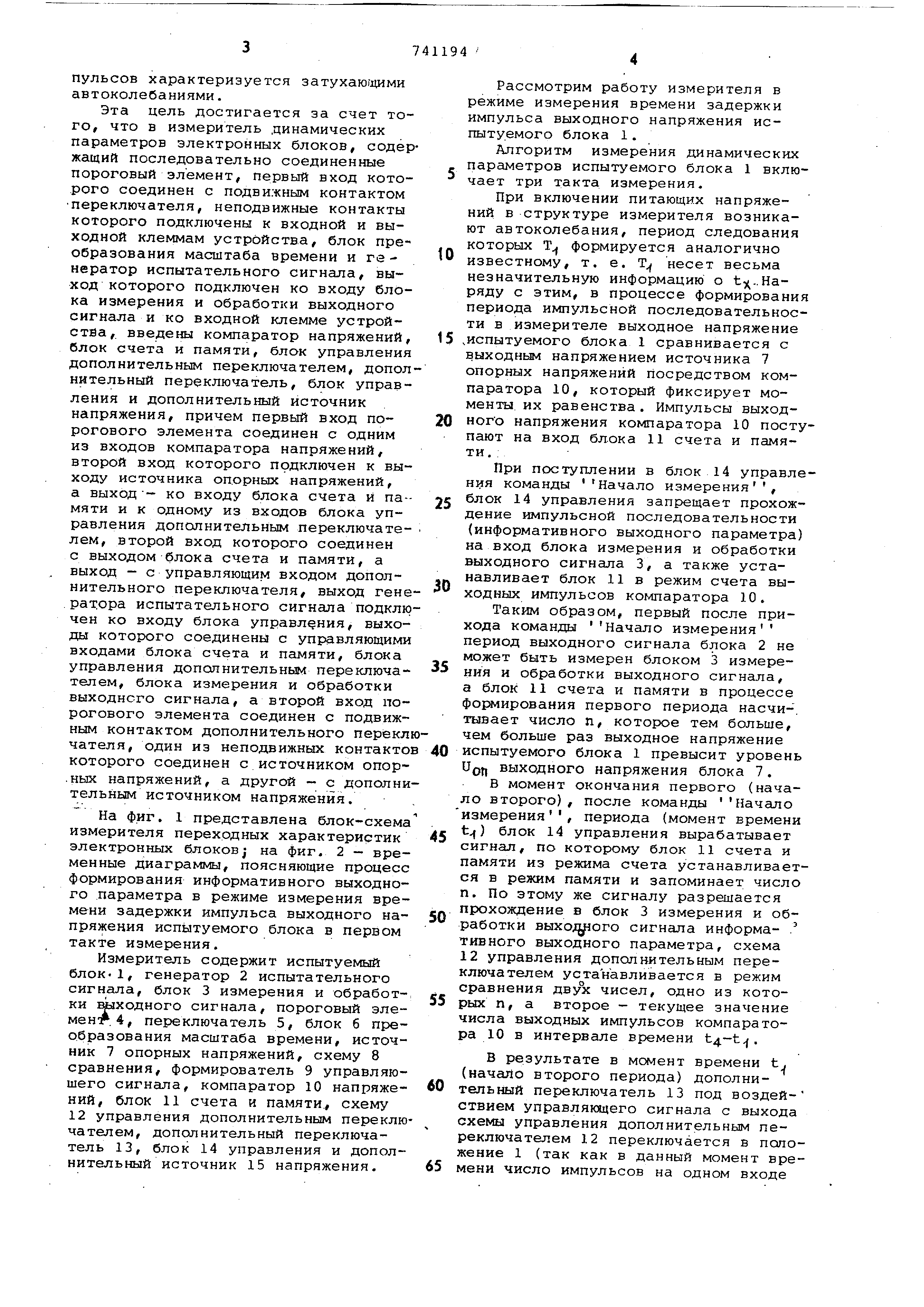 1-0 до момента окончания переходного процесса на выходе испытуемого блока 1. 5 Таким образом, измеритель имеет возможность измерения тех же параметров