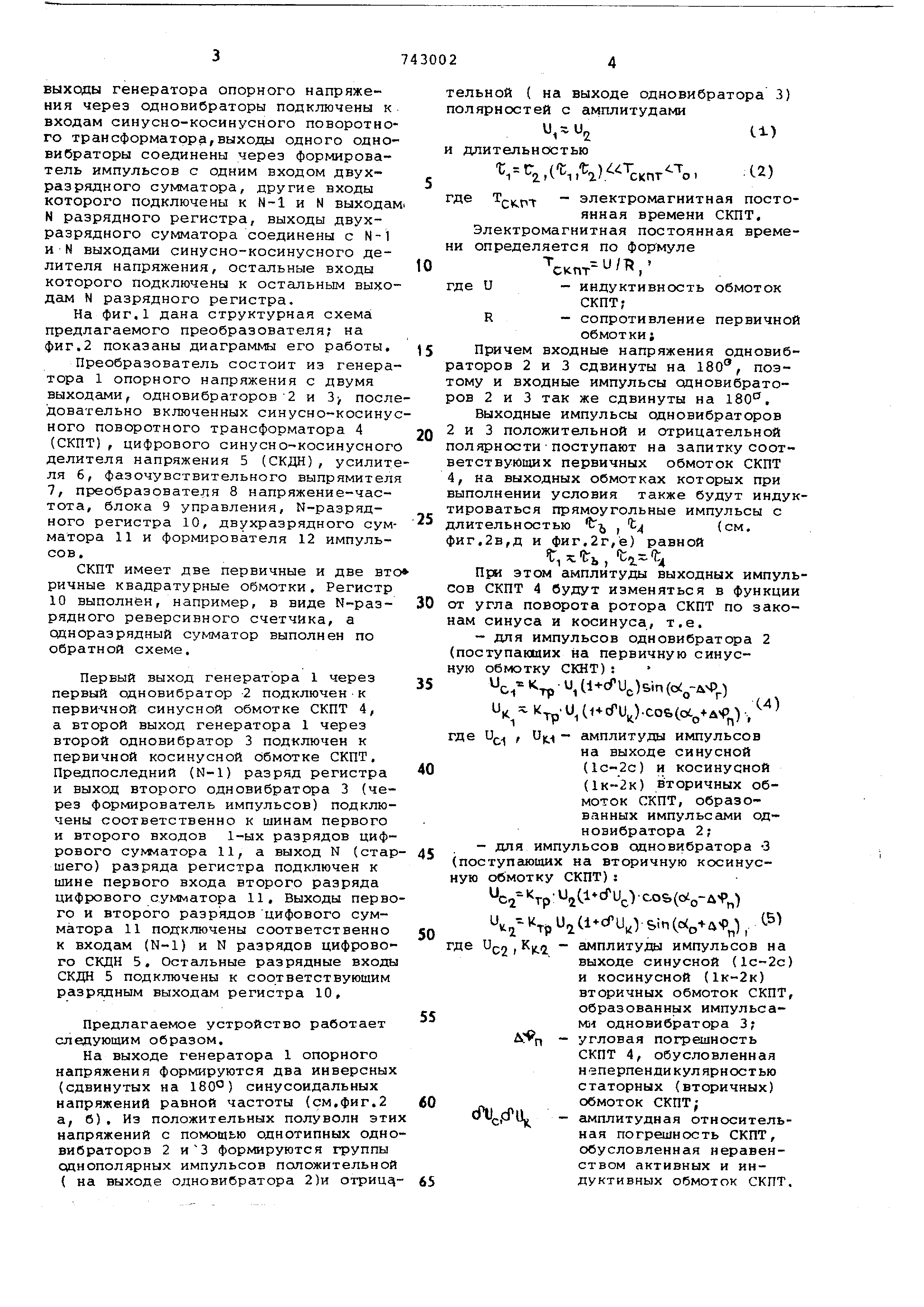 поворотного трансформатора, выходы одного одновибратора «соединены через формирователь импульсов с одним