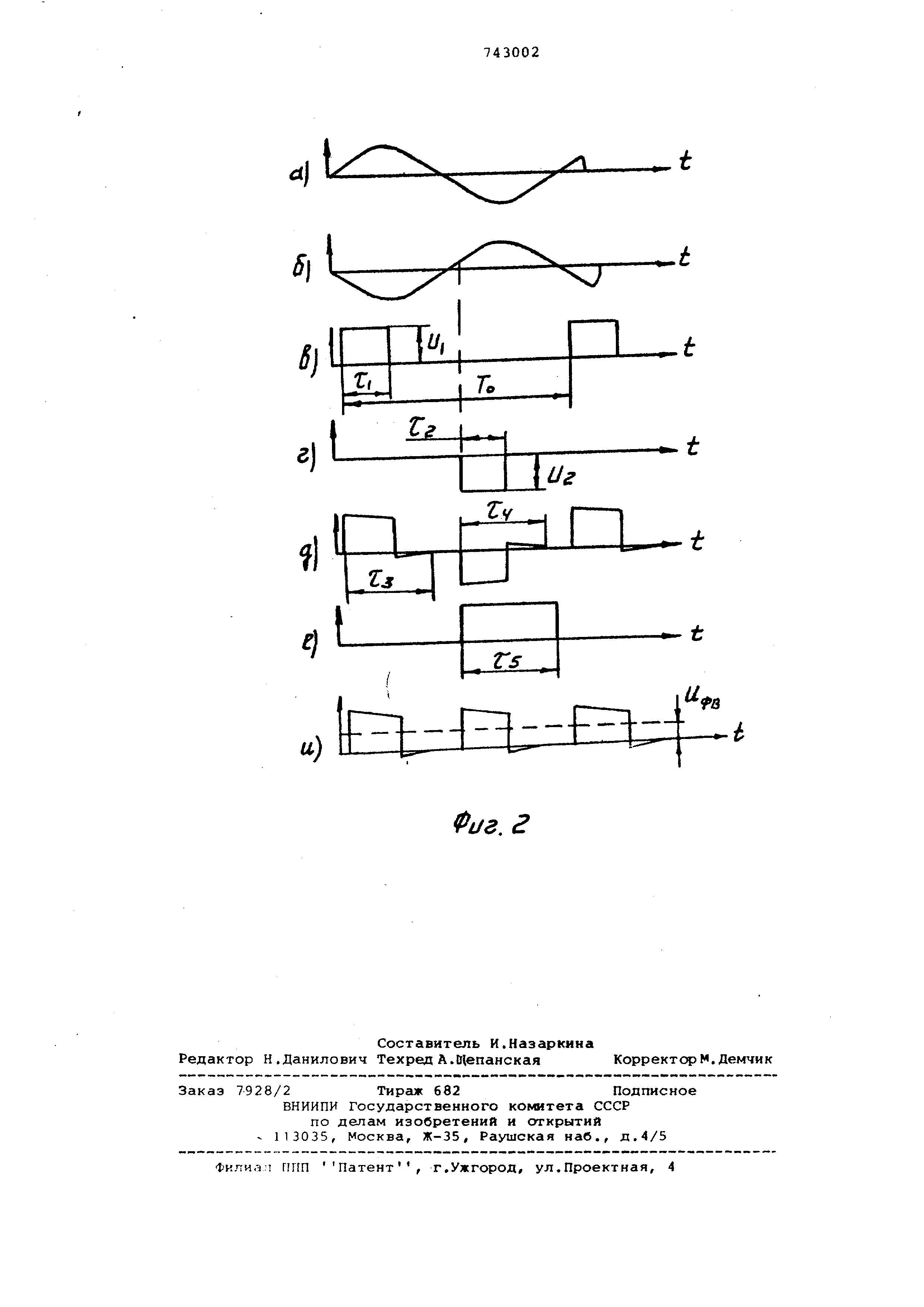 7, на выходе которого формируется сигнал постоянного импульса (см.фиг.2,и), пропорциональный разности